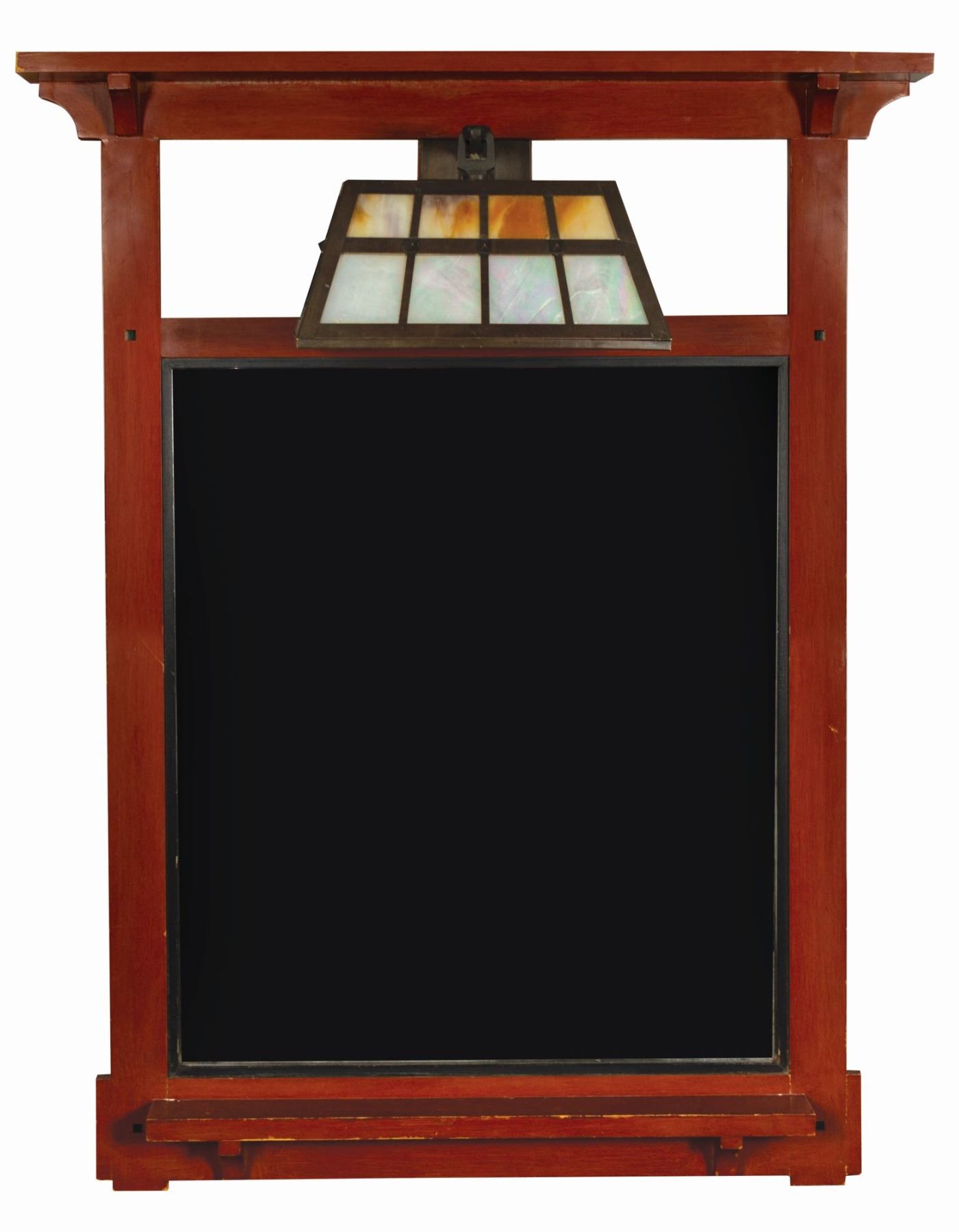 (Grand Californian, 2001) An original mirror and lamp from Disney's Grand Californian Hotel & Spa. This mirror was removed during a recent refurbishment to the hotel, and features the American Craftsman style with redwood finish that was used in the hotel since it first opened in 2001. This impressive mirror and lamp offers a rare opportunity to furnish your home with the same quality, style, and care that Disney has used in one of their most popular hotels over the last 16 years. This item measures 42"x28" and is in very good condition with some expected moderate wear from use.