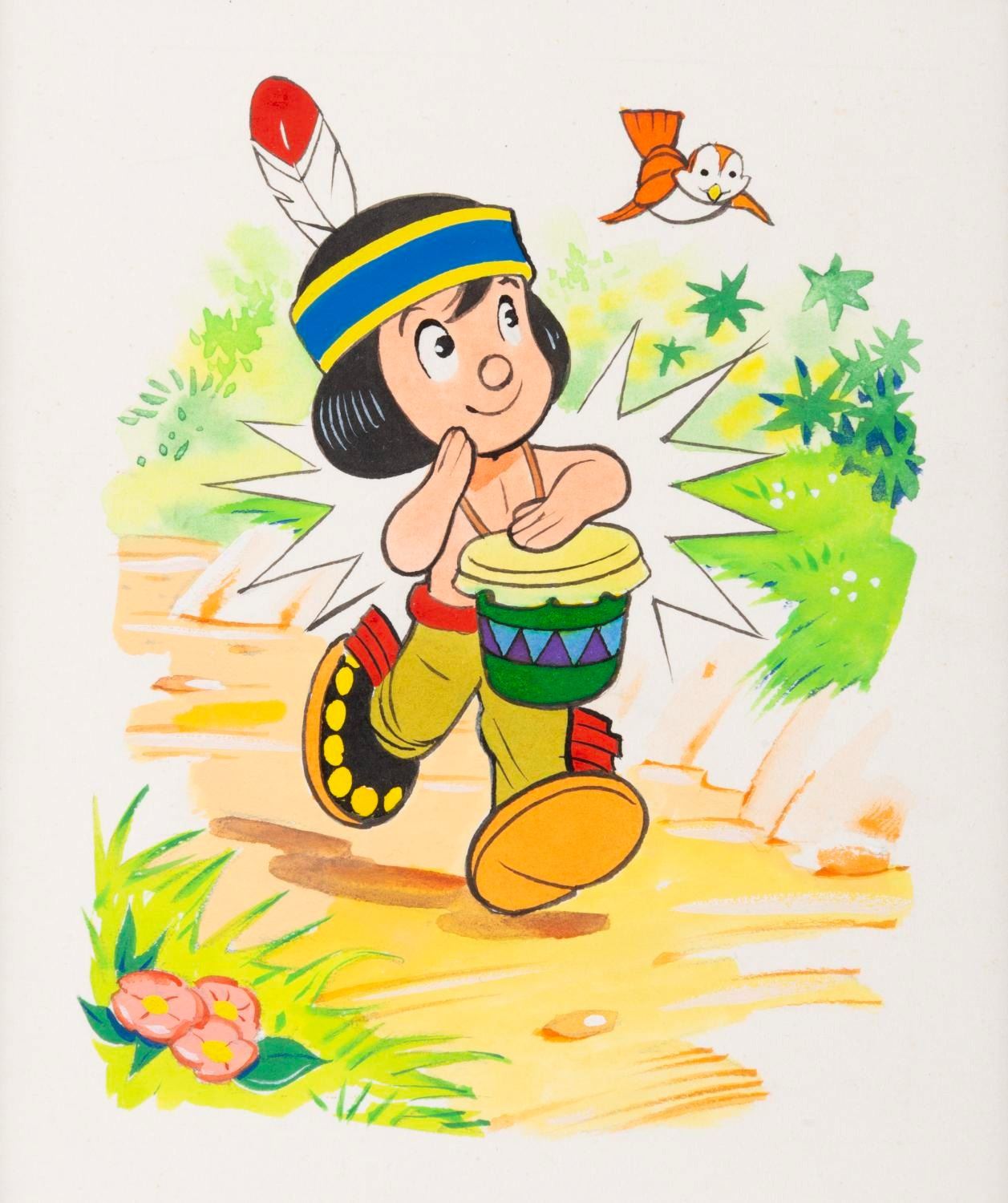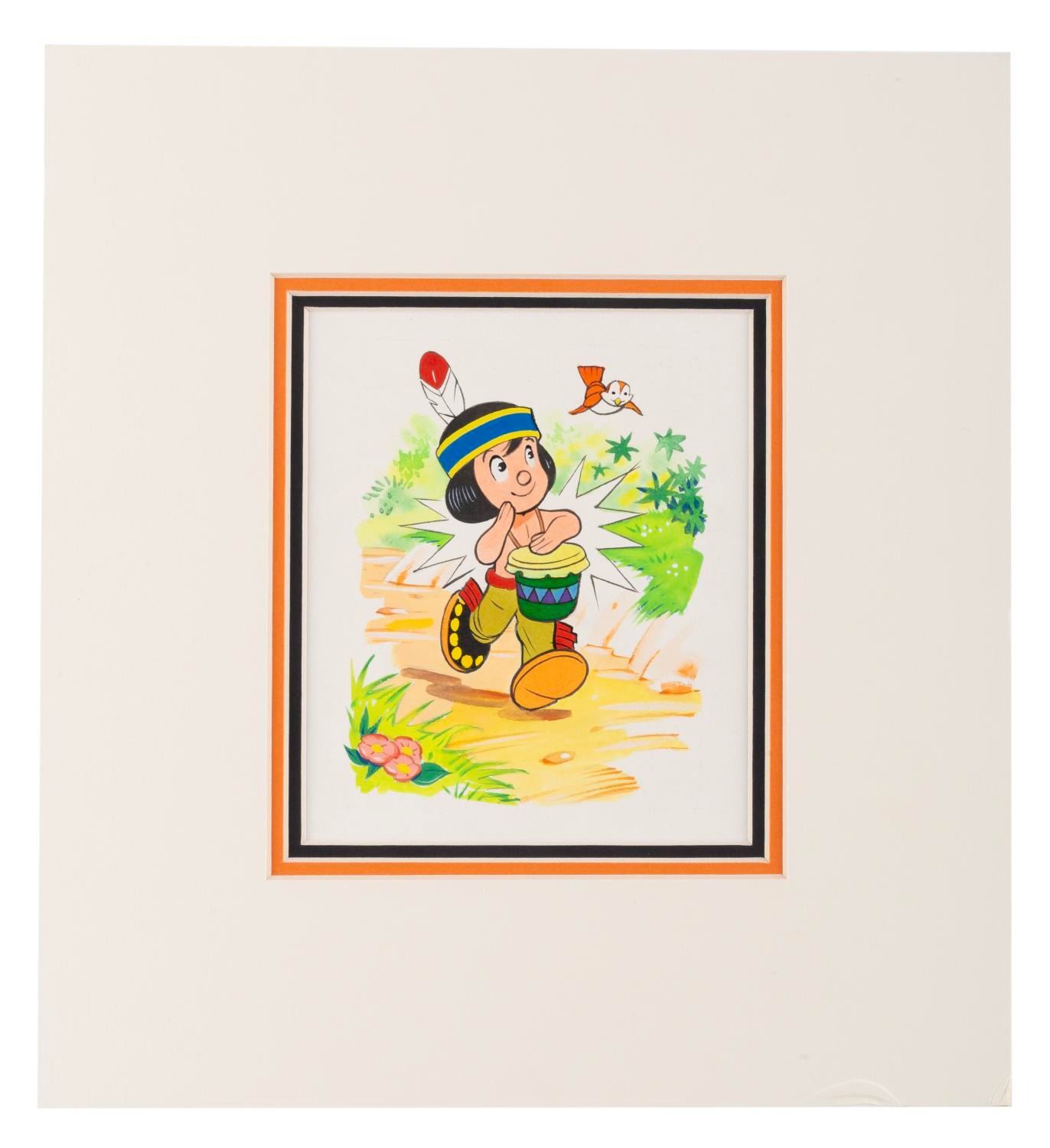 (Disney, 1960s) A painting of Disney’s "Little Hiawatha," accomplished in gouache for a card or storybook. With an image size of 4" x 5.25" in the 11" x 12" matte, the illustration is in fine condition.