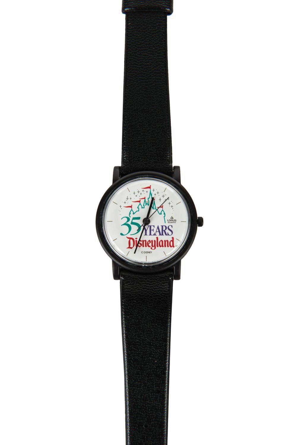 (Disneyland, 1990) A Quartz watch manufactured by Lorus in honor of 35 years of magic at Disneyland. This watch was offered with a purchase of Kodak film, as well as offered among millions of dollars' worth of giveaways to guests throughout the Park's celebrations that year. Measuring 9" long with band, the watch in fine unused condition.