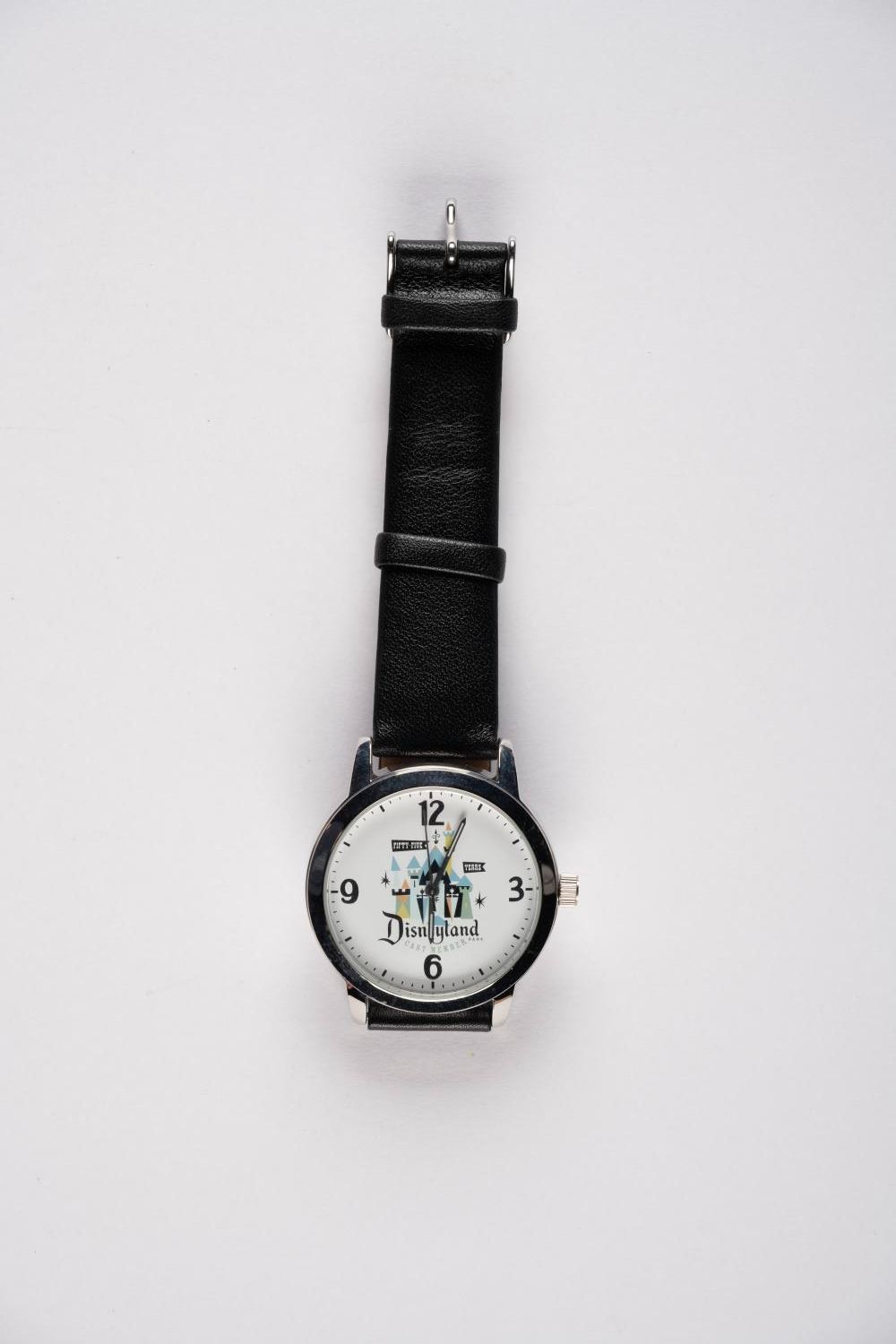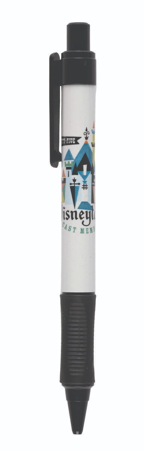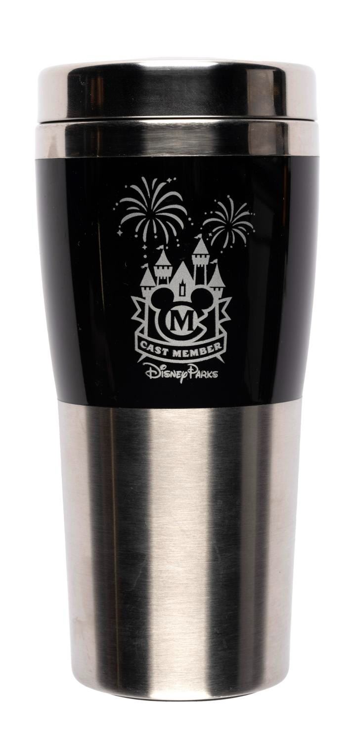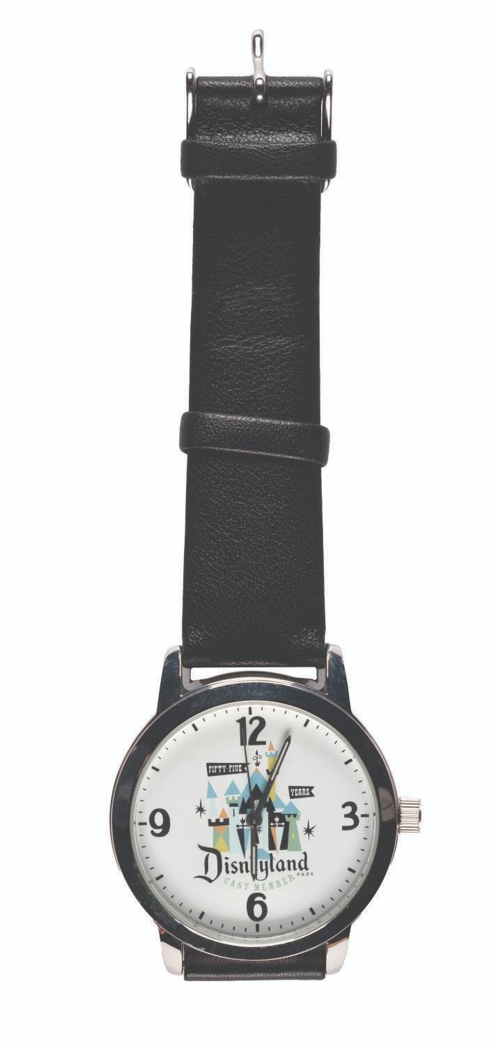 (Disneyland, 2010) A collection of Disneyland 55th Anniversary exclusive Cast Member merchandise. Among this 9-piece collection are (2) wristwatches, a pen, a Cast Exclusive pin, decorative magnet, keyring with fob, a coffee cup, rocks glass, and messenger bag. Measuring various sizes, the items range from fine to good condition, within a 15"x10" canvas bag. The coffee cup, and bag exhibit wear to some of their elements from use.