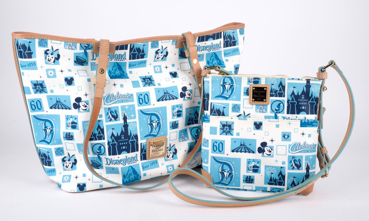 (Disneyland, 2015) A Disneyland 60th Diamond Anniversary purse and handbag set by Dooney & Bourke. The finely crafted satchel tote bag and purse feature a celebrational Park & diamond motif. Both are in fine unused condition.