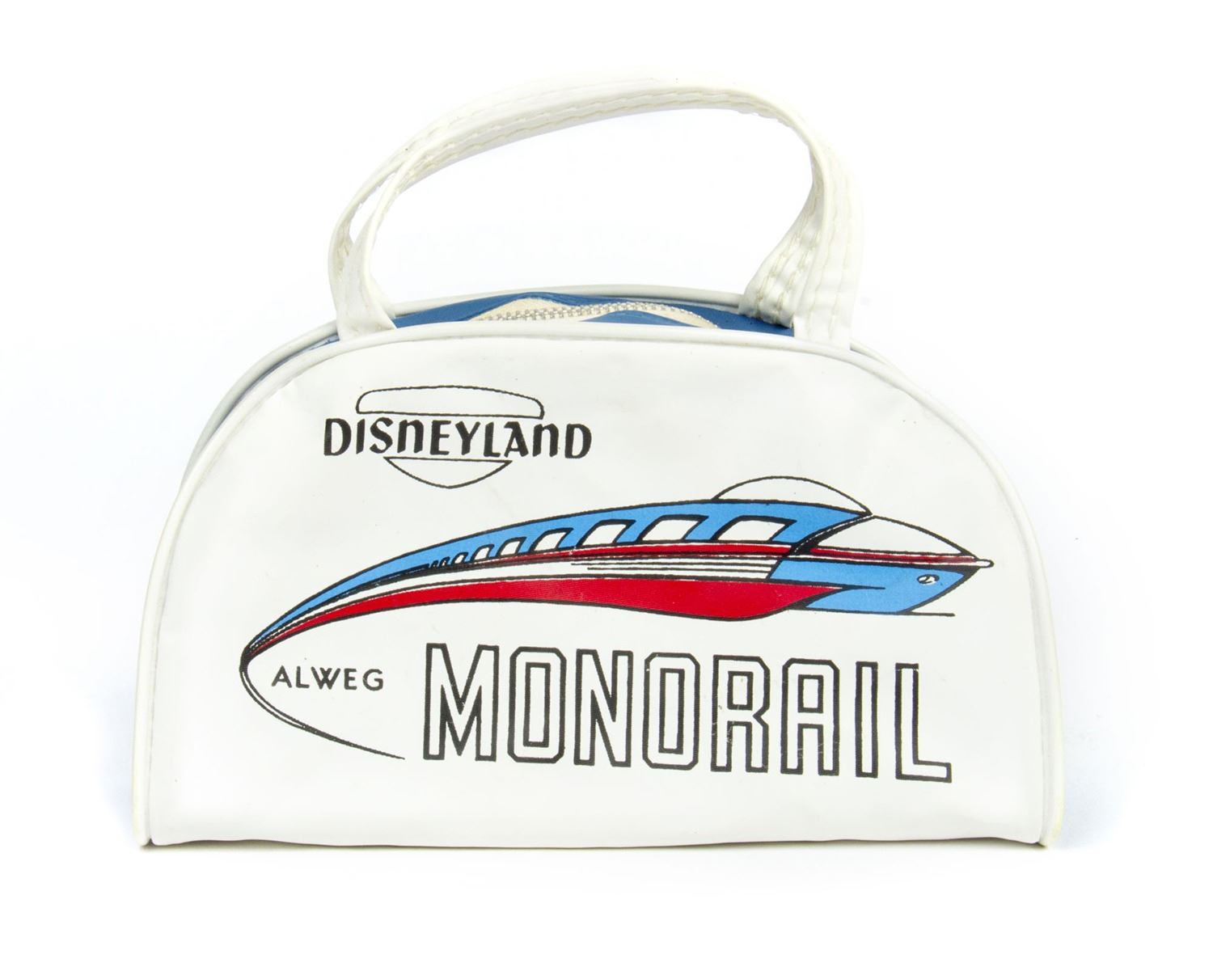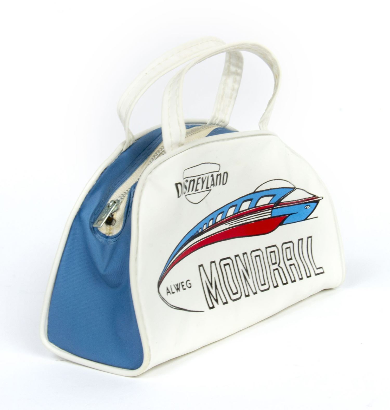 (Disneyland, c.1960s) A rare Alweg Monorail themed flight bag sold in Tomorrowland. The bag measures 6"x7.25" and is in very good condition with some minor surface wear.