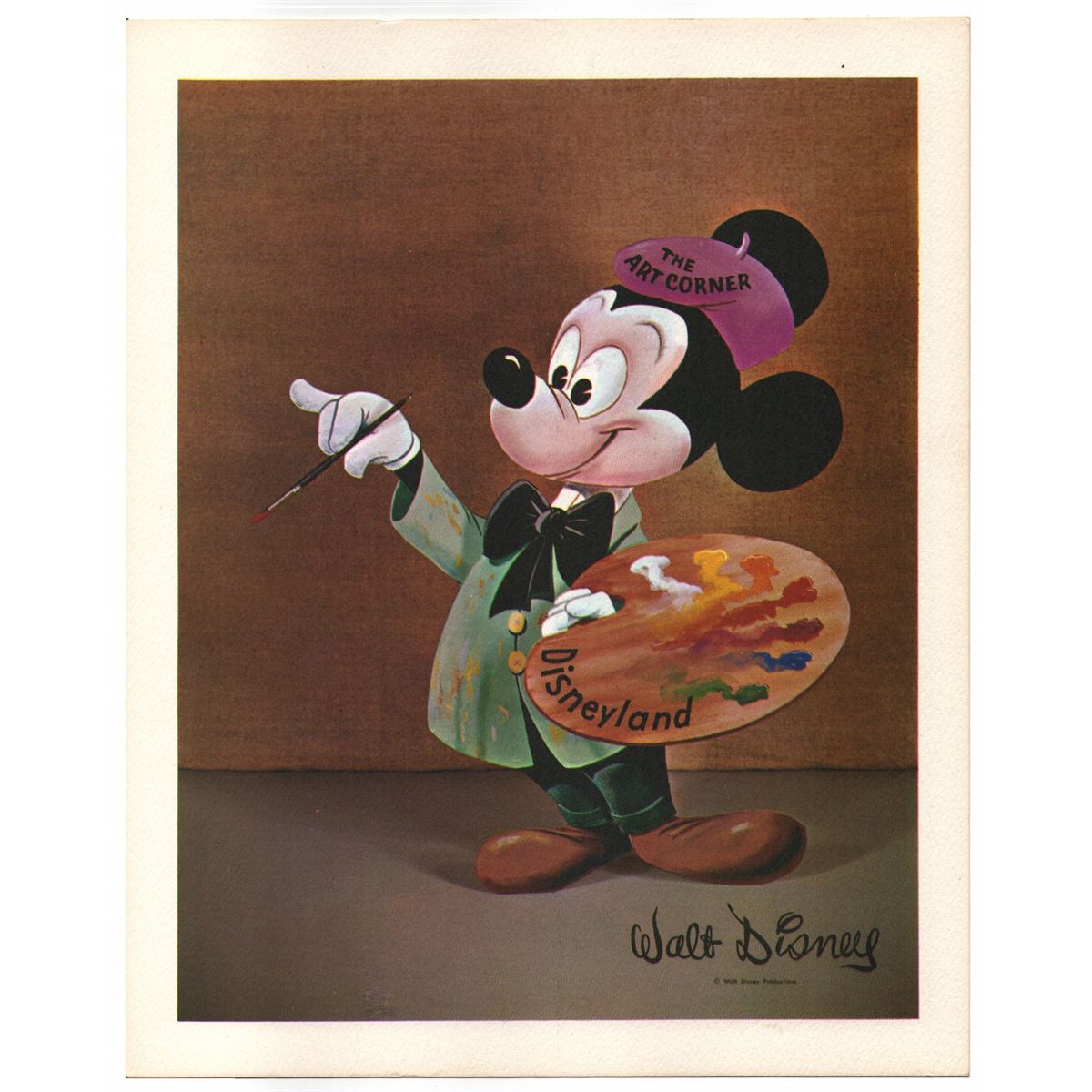 Disneyland, 1960) Charming oversize postcard featuring Mickey Mouse from the Art Corner. Card is in fine condition and measures 10.5 x 8.5 in