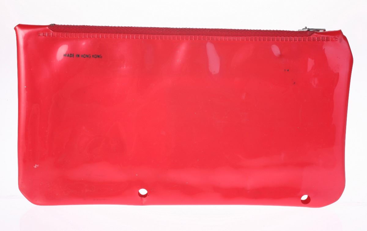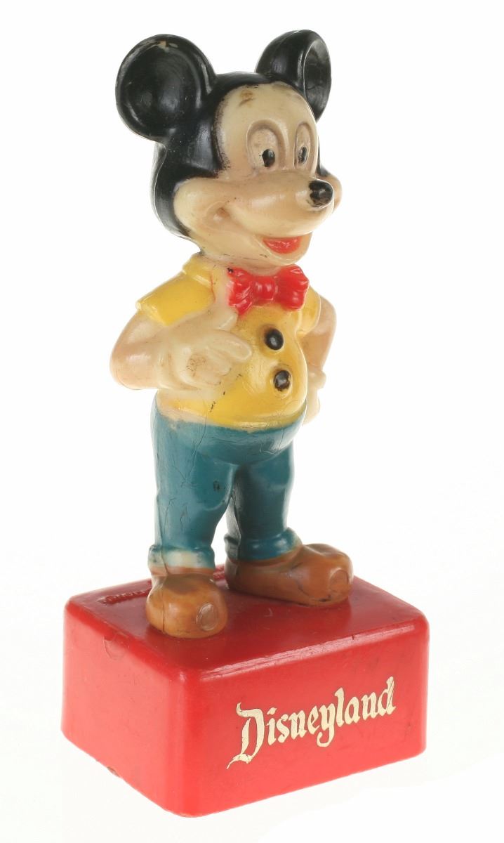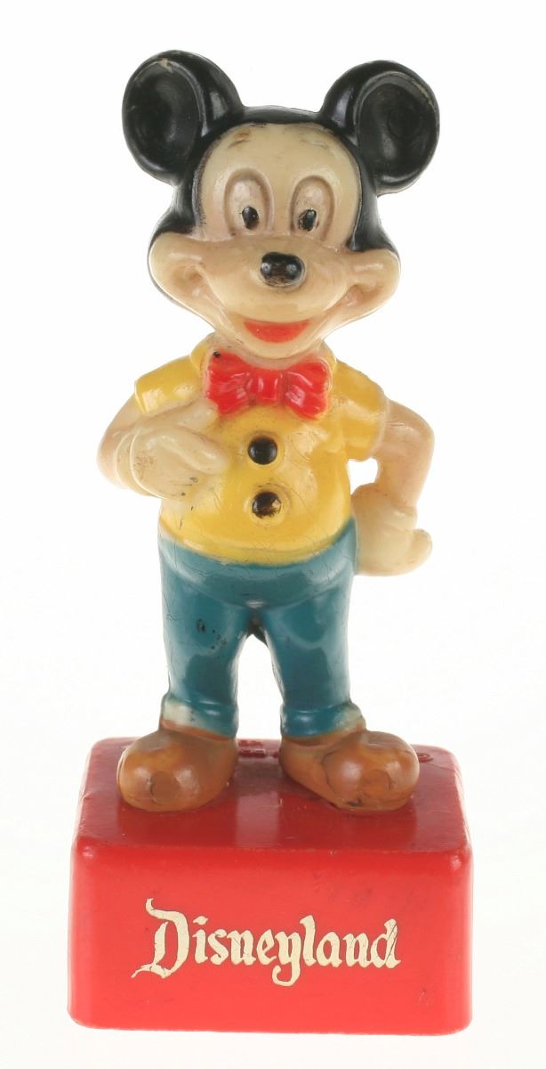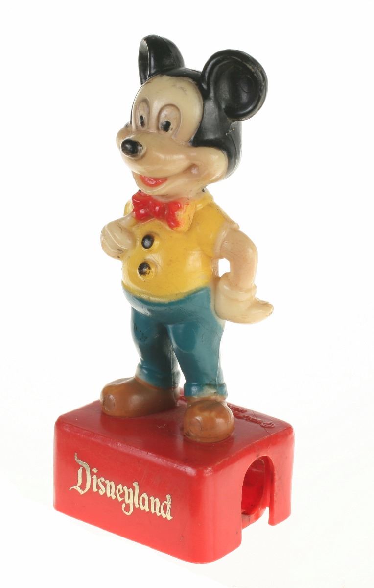 (Disneyland, 1950s-60s) Includes (1) red vinyl pencil pouch with Minnie Mouse on the front, (1) Mickey pencil sharpener, and (1) package of "12 pencils from Disneyland" with Winnie the Pooh label. Set is in good condition with minor wear.