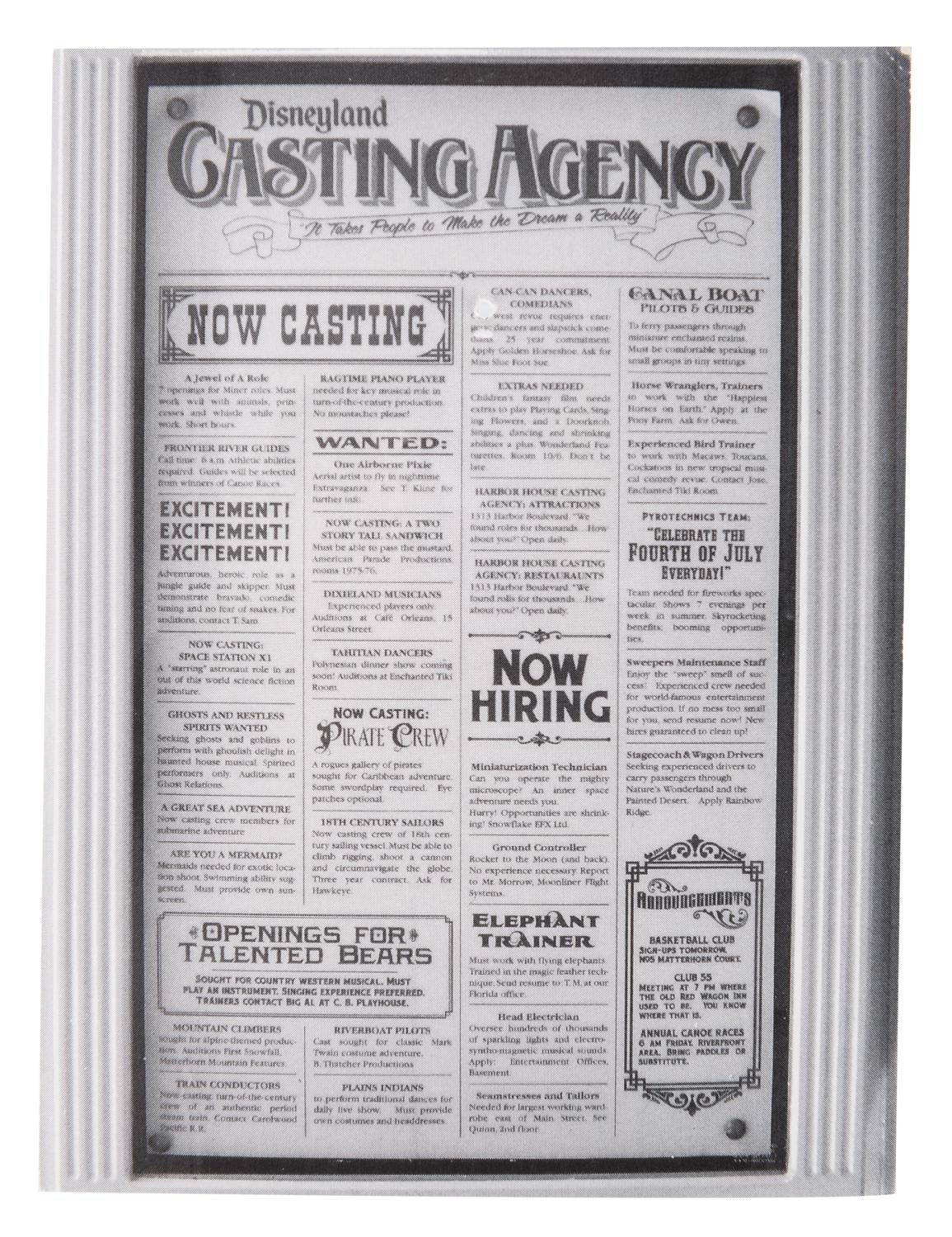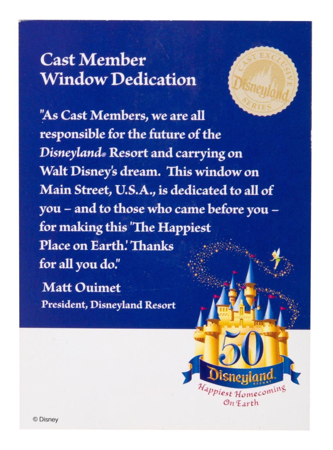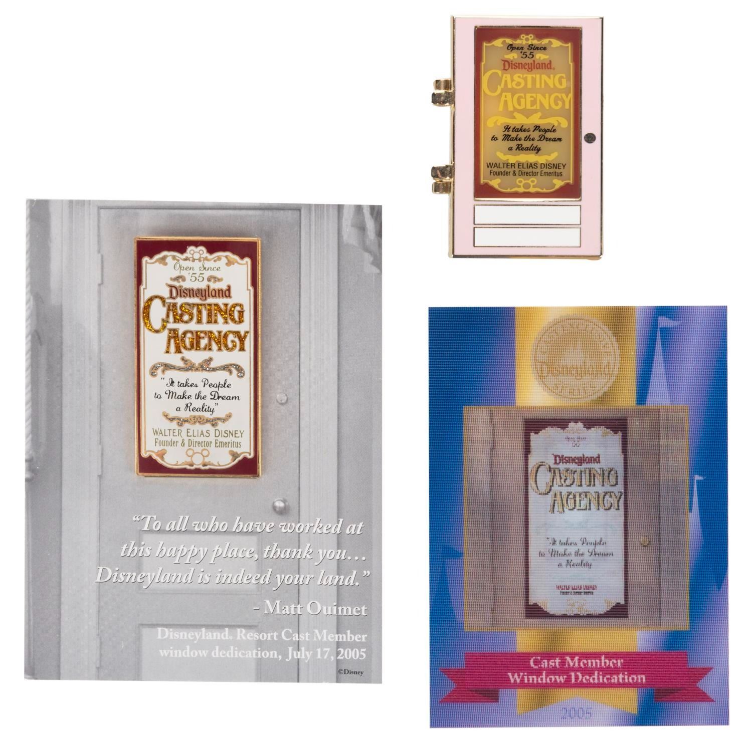 (Disneyland, 2000-2001) A collection of seven Cast Member exclusive pins released during Disneyland’s 45th anniversary in 2000 and Disney’s California Adventure’s opening year of 2001. Included are four pins shaped like name badges and a pewter pair shaped like stamps of Mickey and Minnie. The pins are in fine condition, with color fading to the “45 Years of Magic” pin from age.