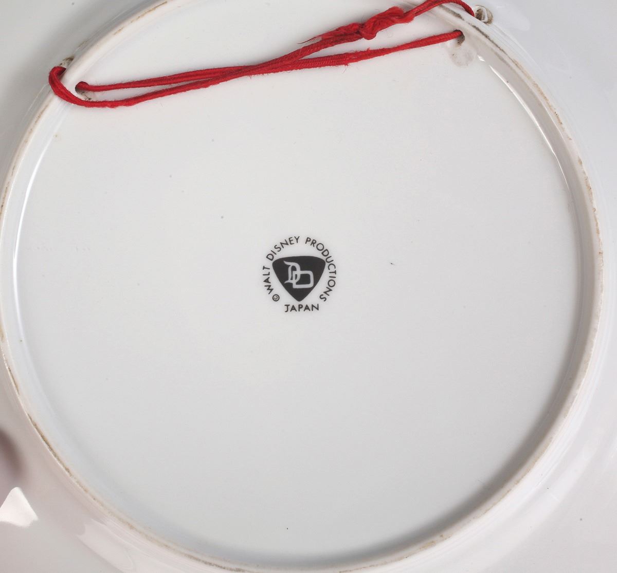 (Disneyland, 1960s) Color-illustrated hanging Disneyland plate featuring artwork of Sleeping Beauty Castle on the surface. Comes with string attached to the back for hanging the plate. Measures 9.25" in diameter and 1" tall. In good condition with minimal wear.