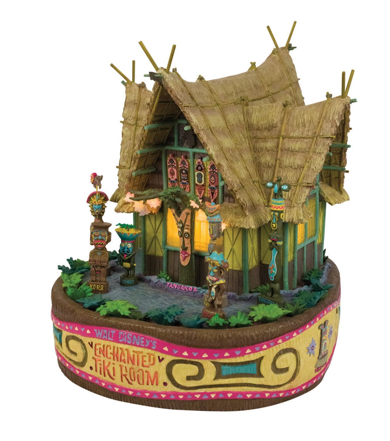 (Disneyland, 2004) A stunning Magical "Big Figurine" created by Larry Nikolai depicting a small-scale version of the Enchanted Tiki Room attraction. This "Big Fig" is battery-powered with lights throughout and has six removable Tiki Garden Gods that have magnetic bases. This item measures approximately 17.5" tall, is in very good condition overall, and includes a facsimile of instructions.