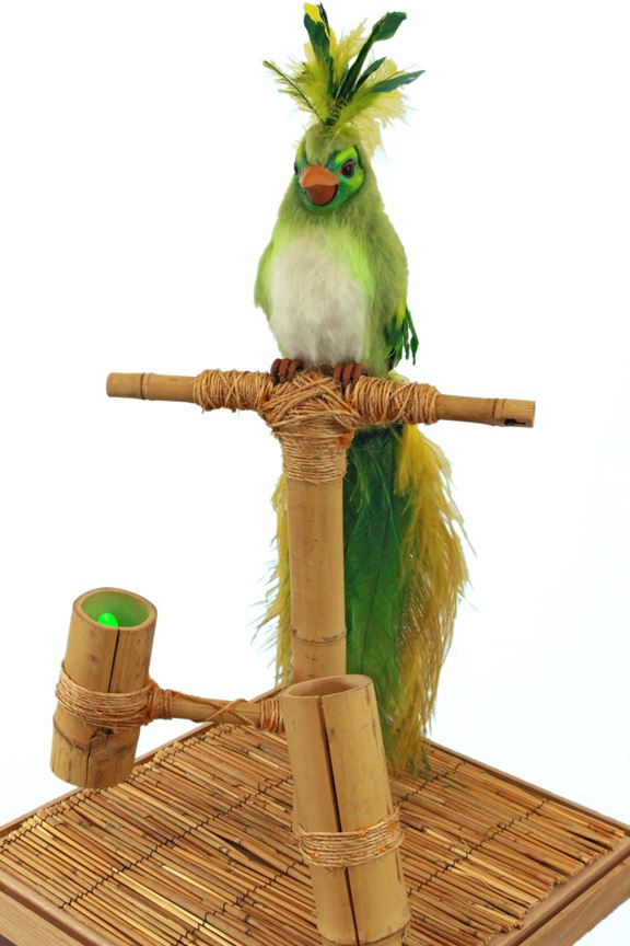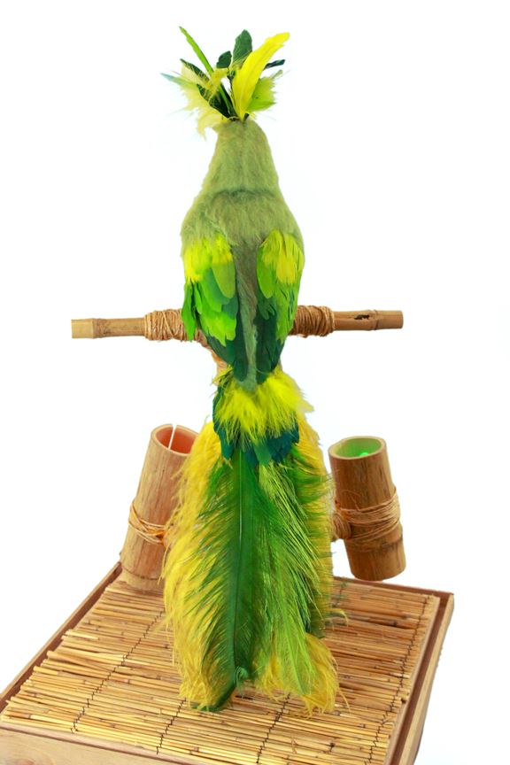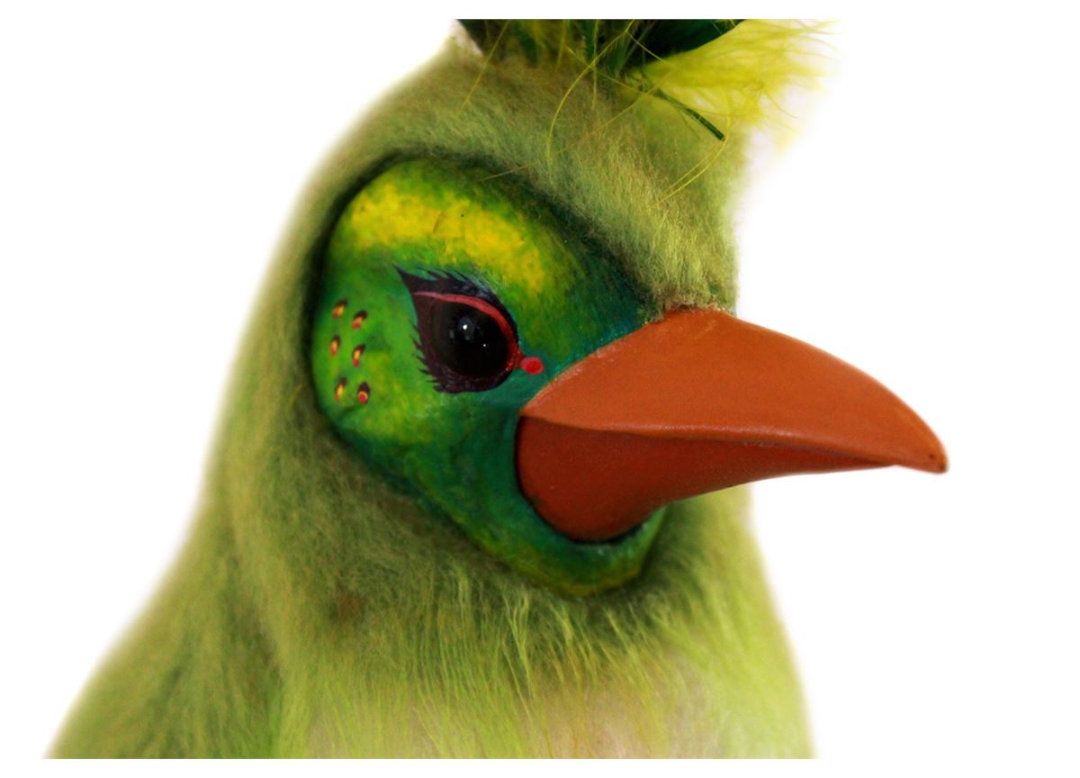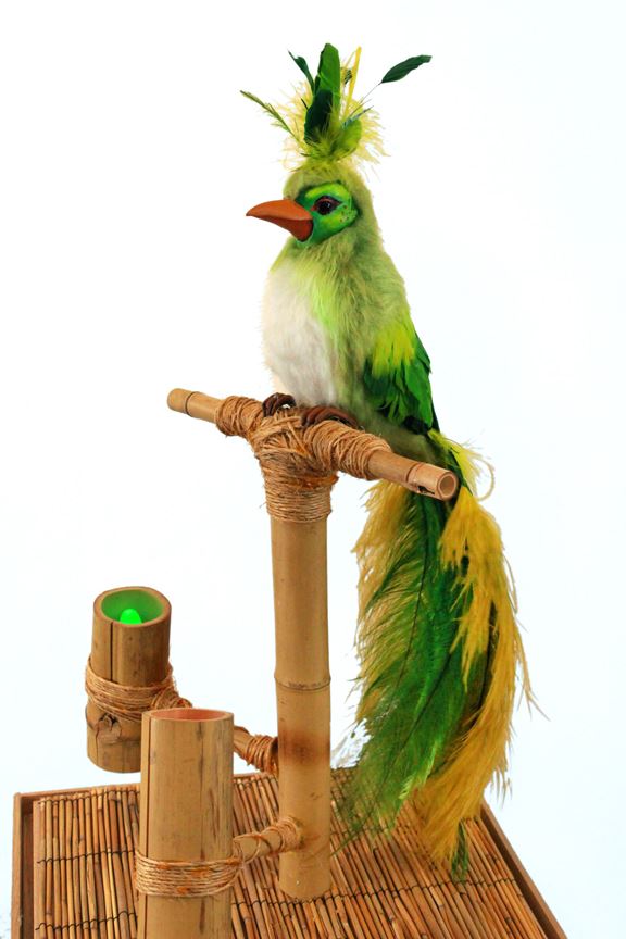 (Disneyland, 1970s) Opening in 1963, the Enchanted Tiki Room was the first attraction to use Audio-Animatronic characters in the park. Conceived as a restaurant with birds that serenaded the patrons, the attraction was originally sponsored by United Airlines, and later by Hawaii’s Dole Food Company. The presentation features a cast of over 150 talking and singing birds, tikis, and flowers. The innovative and advanced technology for the time required a massive computer system, which required the attraction to be air-conditioned; a first at Disneyland. Purchased from an Imagineer that worked on the attraction, this animatronic female bird was a member of the “chorus” and still has her pneumatic cables and control mechanisms inside. Constructed of Fiberglass, paint, feathers, and wool, the 27 in. bird (from bottom feather to top) has been mounted in a custom lit display case measuring 64 x 17 x 17 in. An extremely rare and desirable item. Special shipping arrangements will apply.