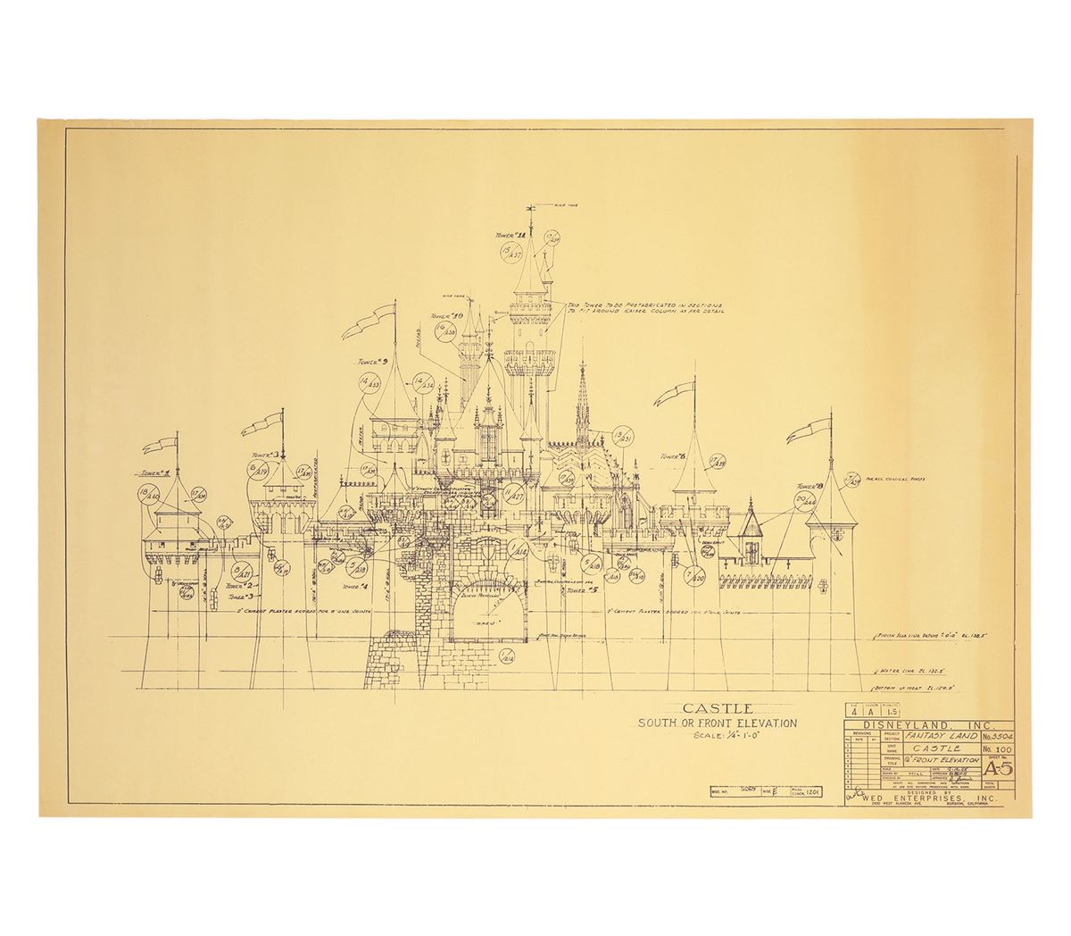 (Disneyland, 1955) Rare Disneyland Fantasyland Castle Blueprint featuring the
