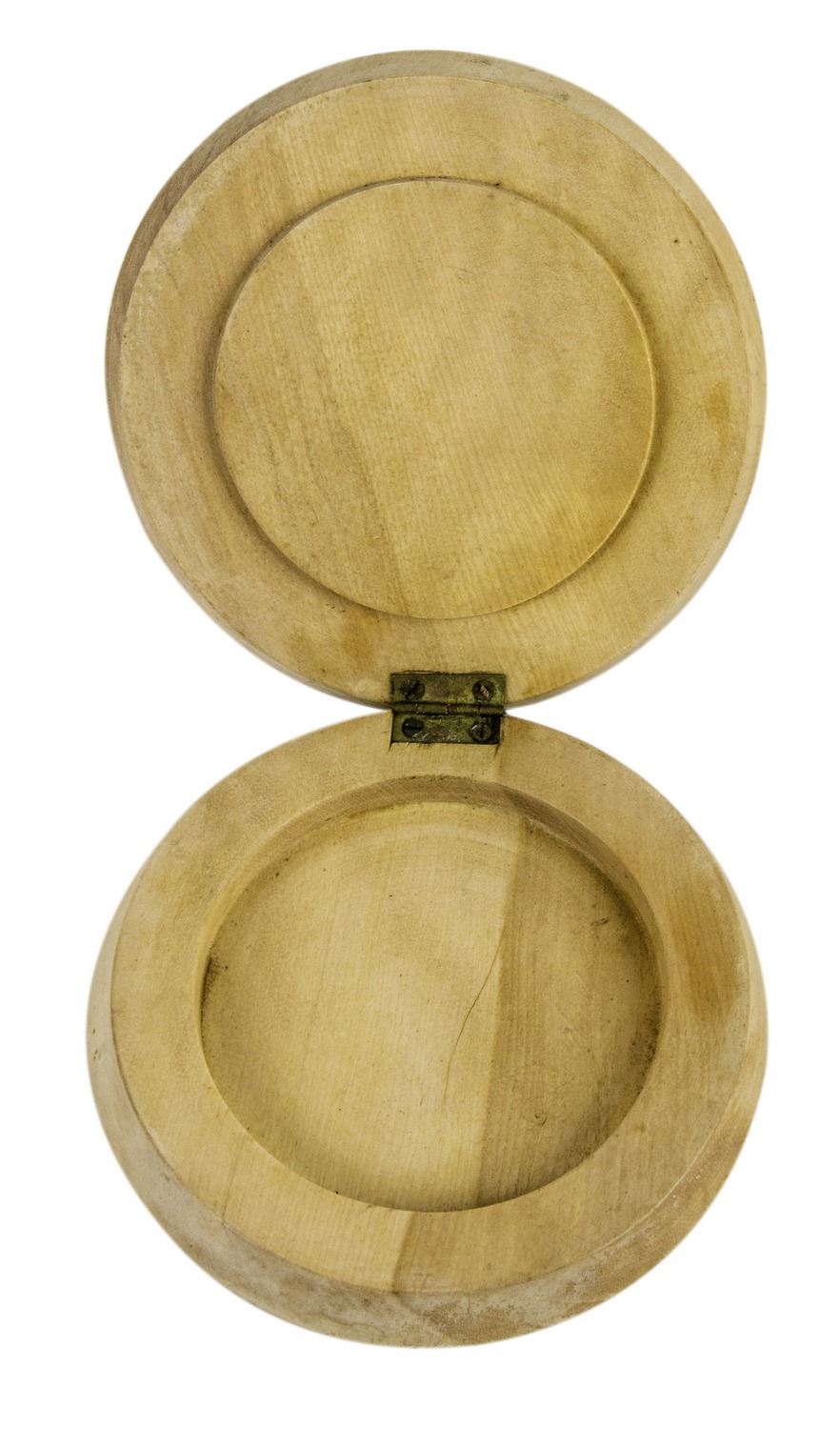 (Disneyland, c.1957) A vintage wooden hamburger press from Disneyland. This hamburger press reads "Hamburger Press - Disneyland" along the top surface, and has a metal hinge connecting the wooden top and bottom halves. This press measures approximately 6" in diameter and is in very good condition with some color wear to the lettering from age.