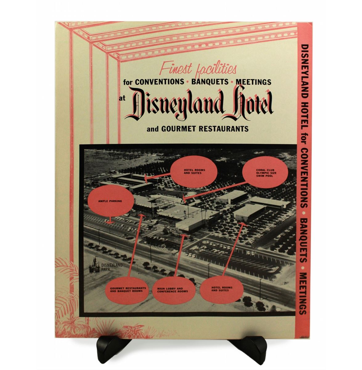 (Disneyland, 1956) Rare sales brochure from the earliest days of the Disneyland Hotel. This beautiful brochure features renderings and photos of the hotel and its facilities from the first year of operation. Like Disneyland itself, the Disneyland Hotel went through exciting expansions almost every year. This large tri-fold is brimming with great information on the hotel and its facilities for banquets, conventions, and meetings. Measuring 11 x 9 in. and in very good condition.