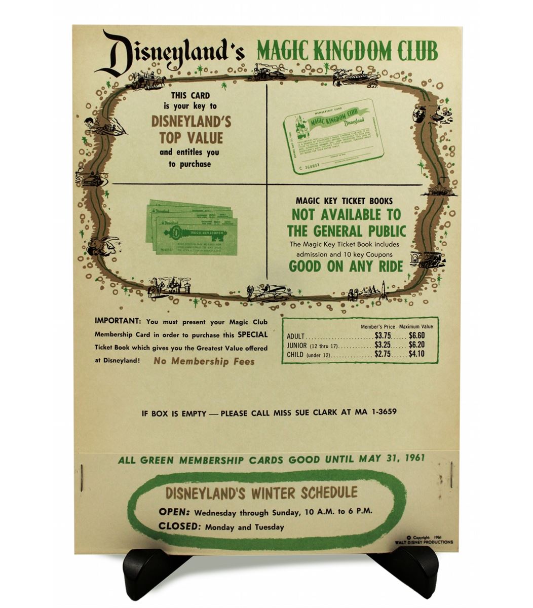 In 1958, Disneyland initiated the Magic Kingdom Club. A predecessor to the concept of "annual passes", the MKC offered discounts for return visits and purchases during those times.