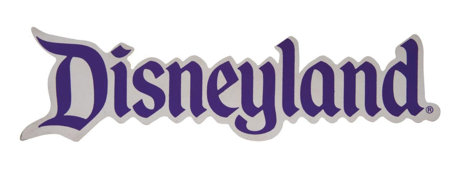 (Disneyland, 1990s) A Disneyland sign used to decorate show elements during the 1990s. Signage of this sort bearing the registered "Disneyland" name was used for props relating to parade vehicles, lamppost decorations, Photo Opportunity locations, and more. Measuring 7"x26", the durable pvc board sign is in very good condition, with few scuffs and minor wear from original Park-use.