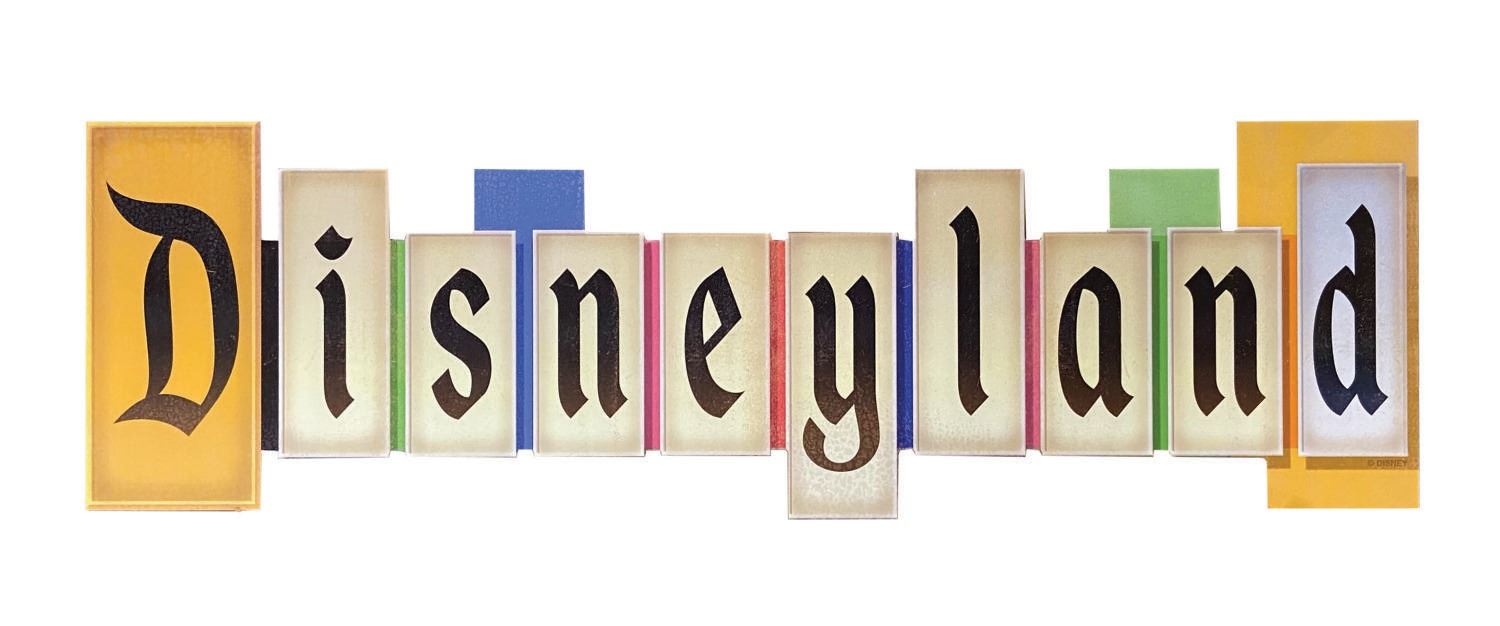 (Disneyland, c.2010s) A wall sign replicating the original Main Entrance marquee from Disneyland. Printed in full color on a wood composite backing, the sign is display-ready with integral hanging hardware on the reverse. Measuring 10.5"x36.25", the piece is in fine, as-new condition with intentional age distress in the print.