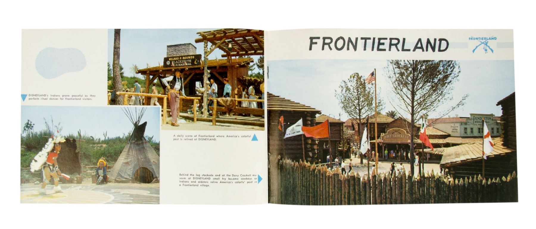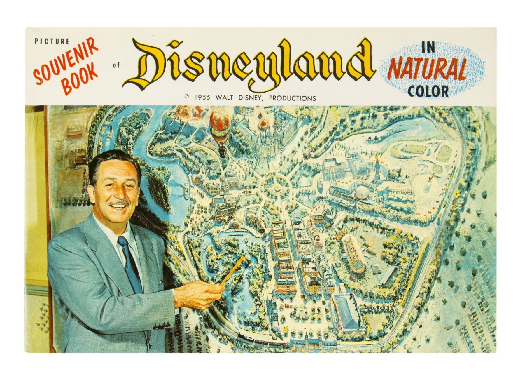 (Disneyland, 1955) A very rare souvenir picture guidebook from Disneyland's Opening Year. The book features great cover imagery of Walt Disney with a map of the park, and contains 24 pages of photos and information. The book measures 6"x8.75" and is in very good condition with minor wear.