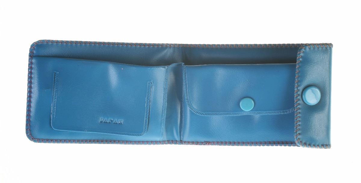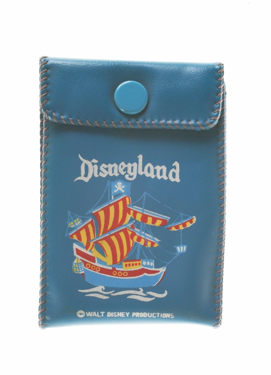 (Disneyland, 1960s) Blue fold-out wallet featuring pirate ship imagery on front. Measures 4"x2.75". In good condition with minor wear.