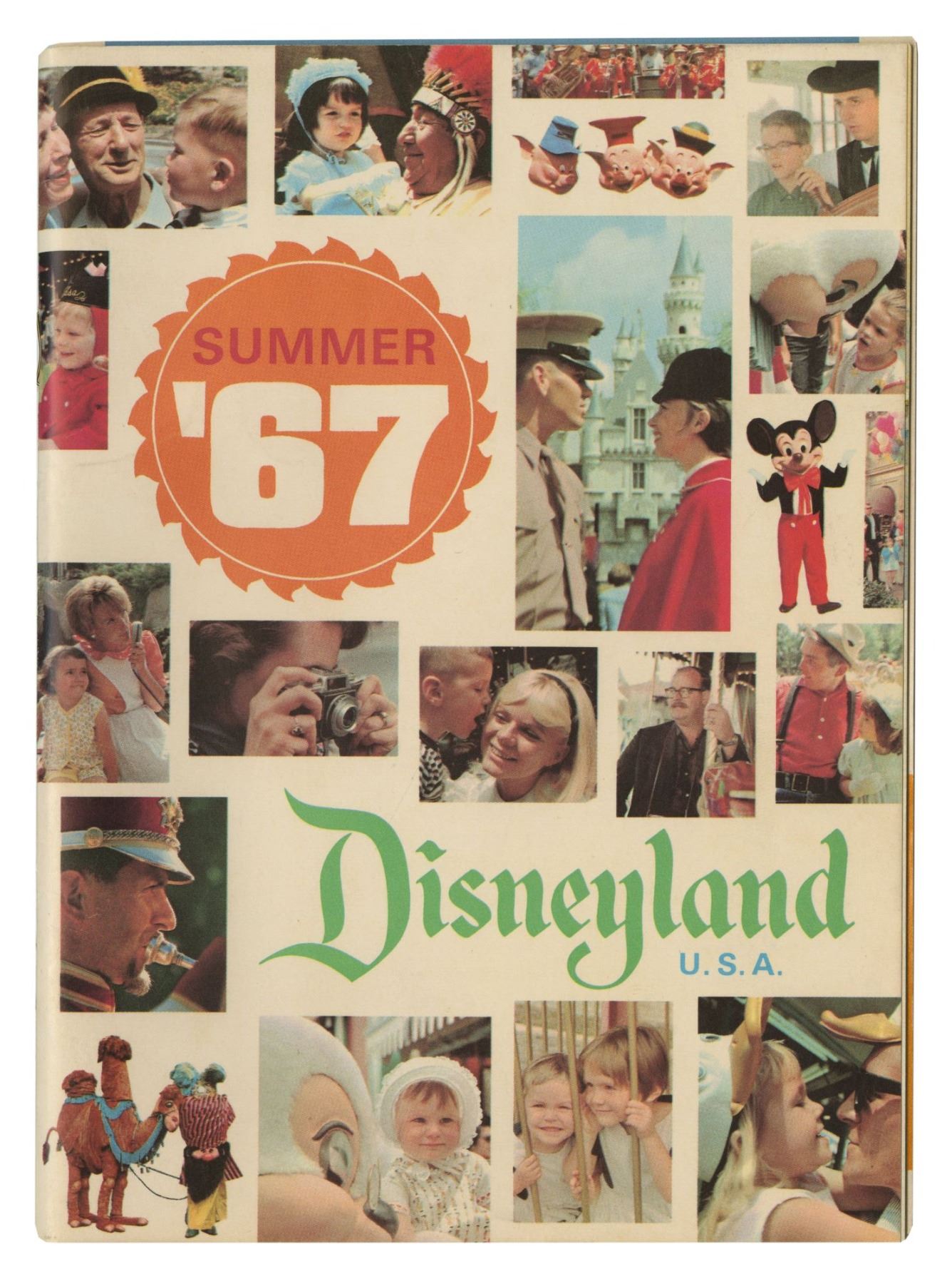 (Disneyland, 1967) A guidebook created for the summer of 1967 to highlight the recent additions and changes at the park. This book features photos and information on the New Tomorrowland, Pirates of the Caribbean, It's a Small World, and more. This 48-page guidebook measures 8.25"x6" and is in good condition with minimal edge-wear. A couple of pages are loose, but are still included.