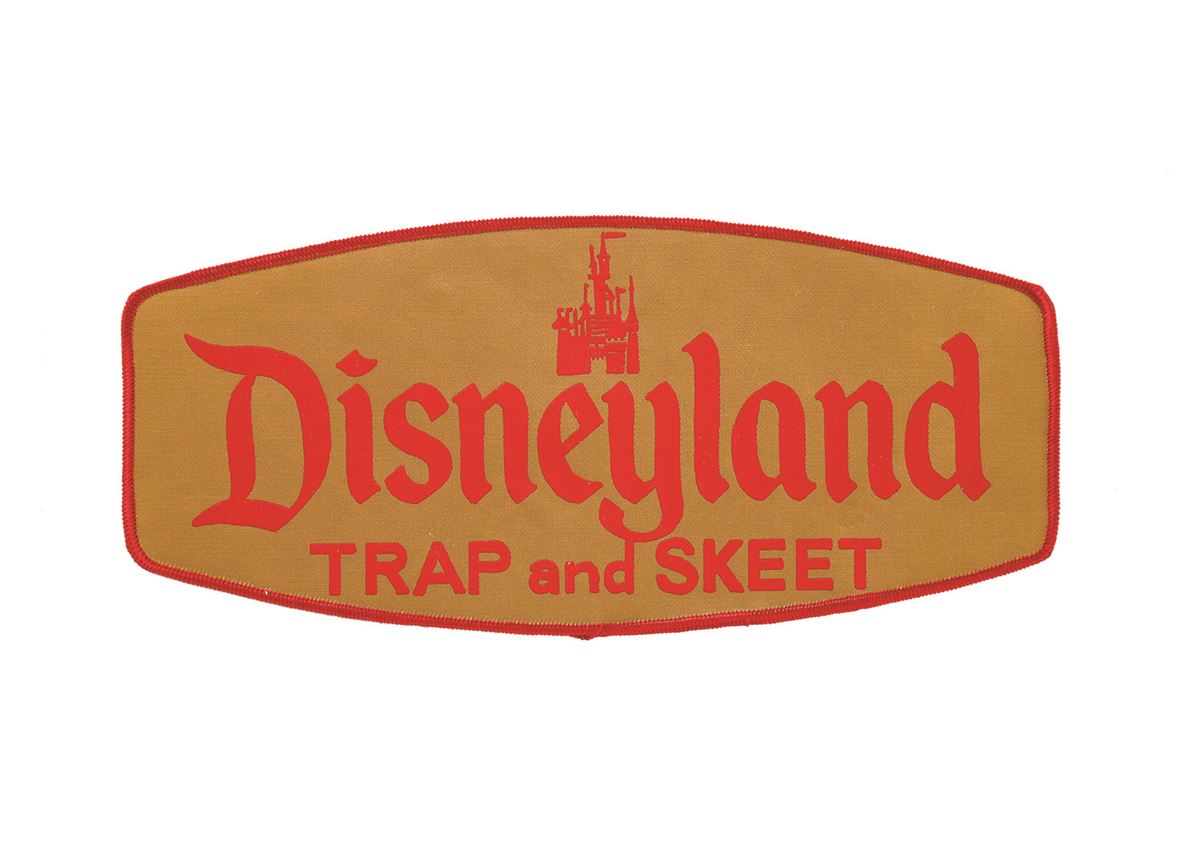 (Disneyland, 1970s) Unusual oversize cloth Jacket Patch for The Disneyland Trap and Skeet Club. Most likely from the early 1970s, the patch measures 11" x 5" and is in good unused condition.