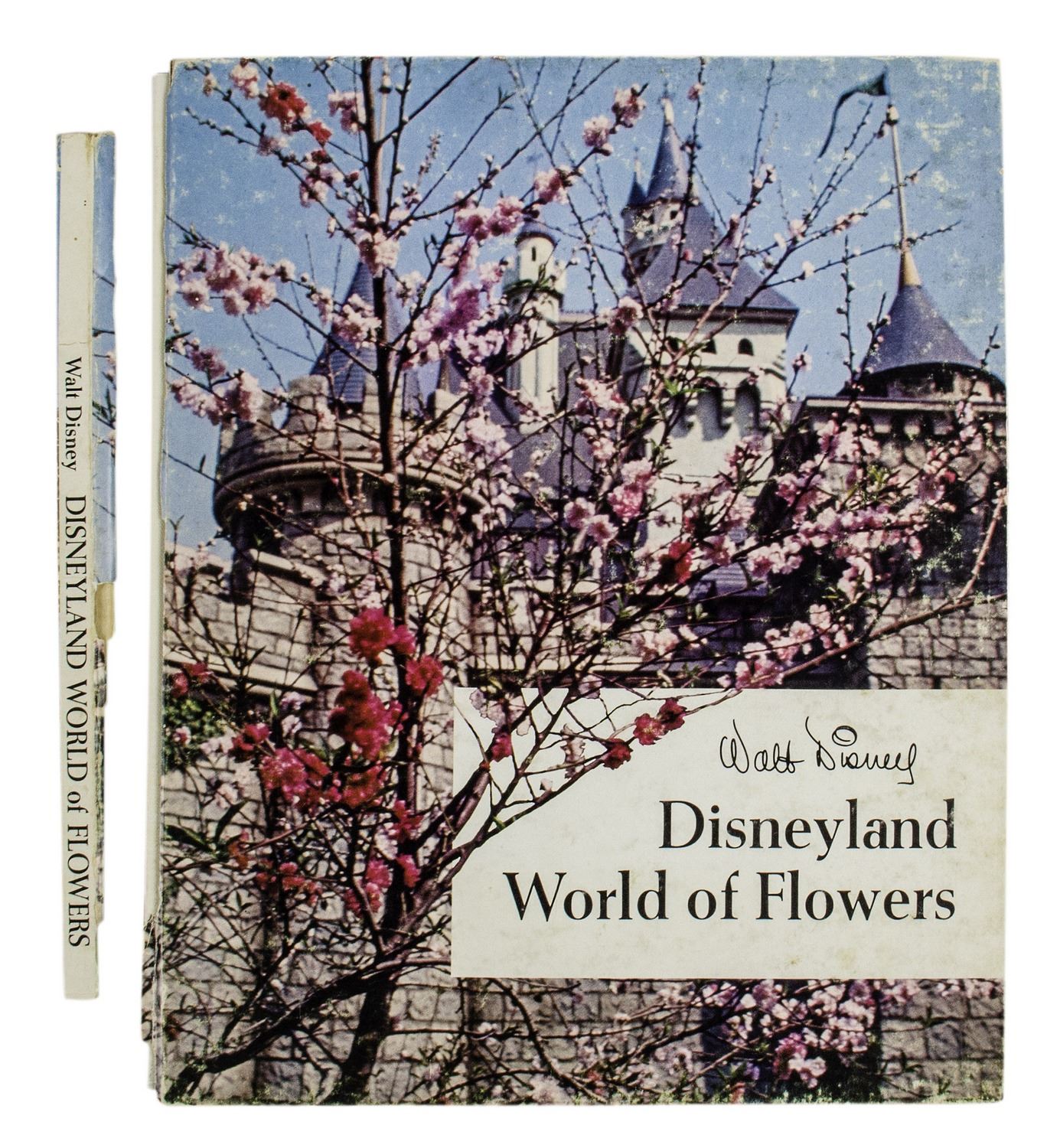 (Disneyland, 1965) An extremely rare hardback souvenir book published and sold at Disneyland. Written by famed Disney horticulturalist, Morgan “Bill†Evans, this volume was published in 1965. This book features terrific vintage photos of rare details of the park. The book measures 11.25"x9.25" and is in fair to good condition. The portion of the cover along the spine is separated, which is common for this book as the binding was not of the highest quality.