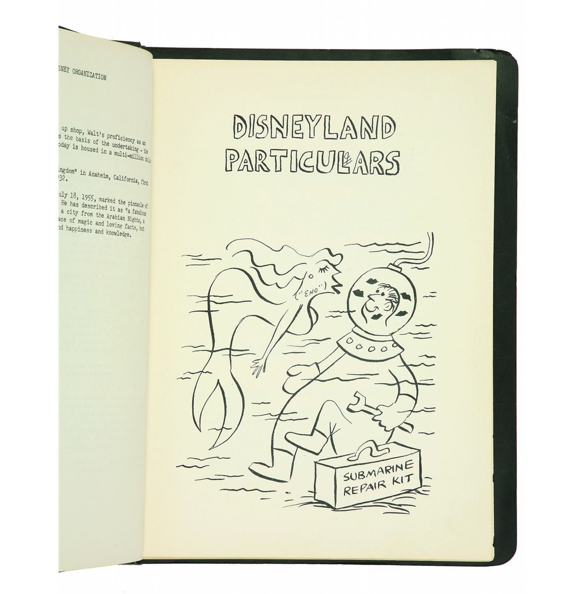 (Disneyland, 1959) A very rare document titled, “Disneyland Dictionary” but hand-titled “The Black Book” by its original owner, this folder contains an internal management park “Bible” that has been updated with hand-written notes. Measures 11.5”x9”. (67) pages. In good condition with minimal wear and pen notes throughout.