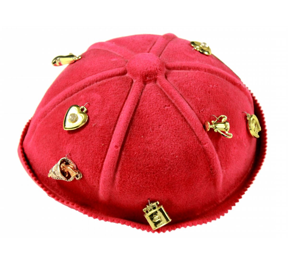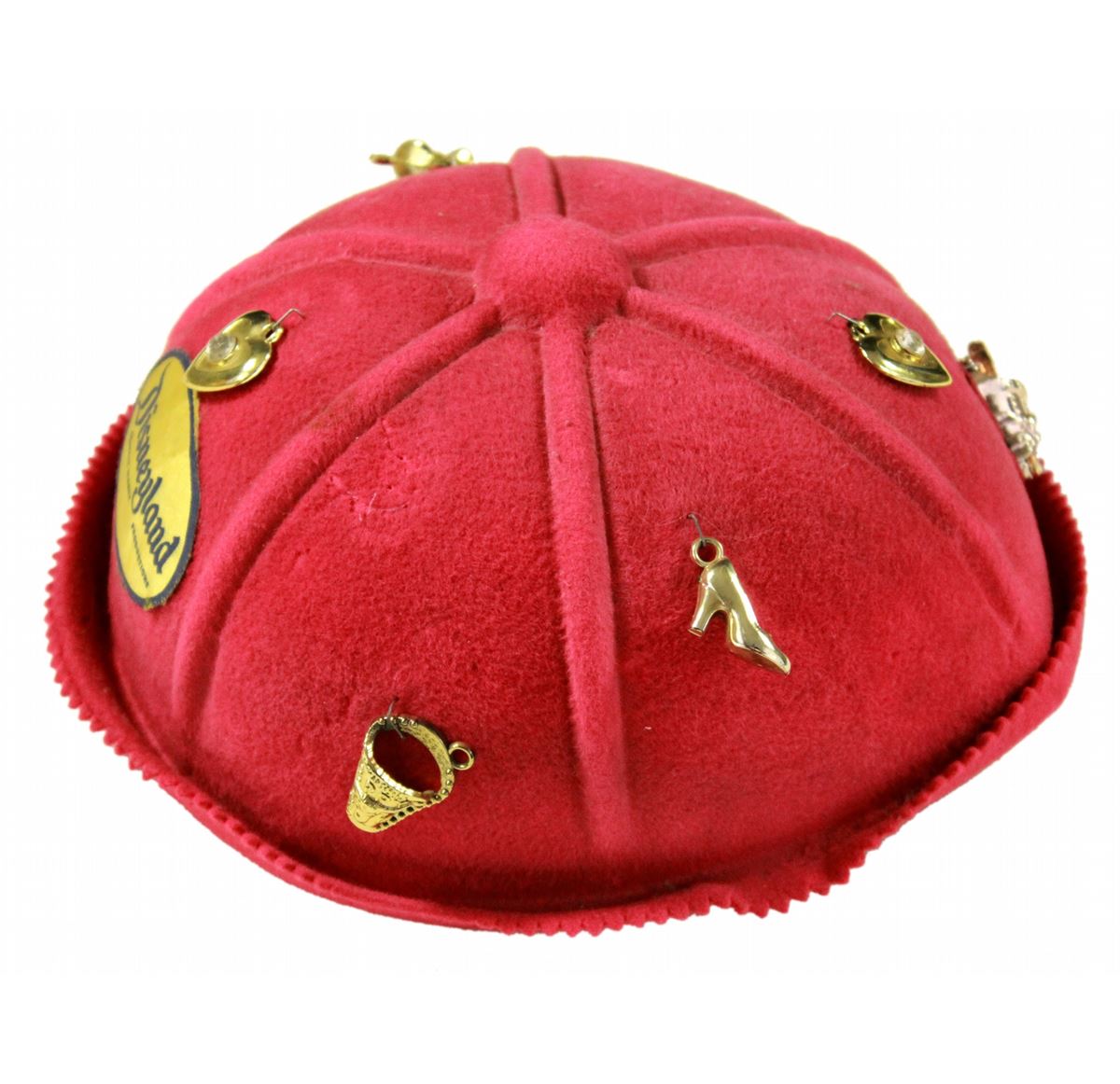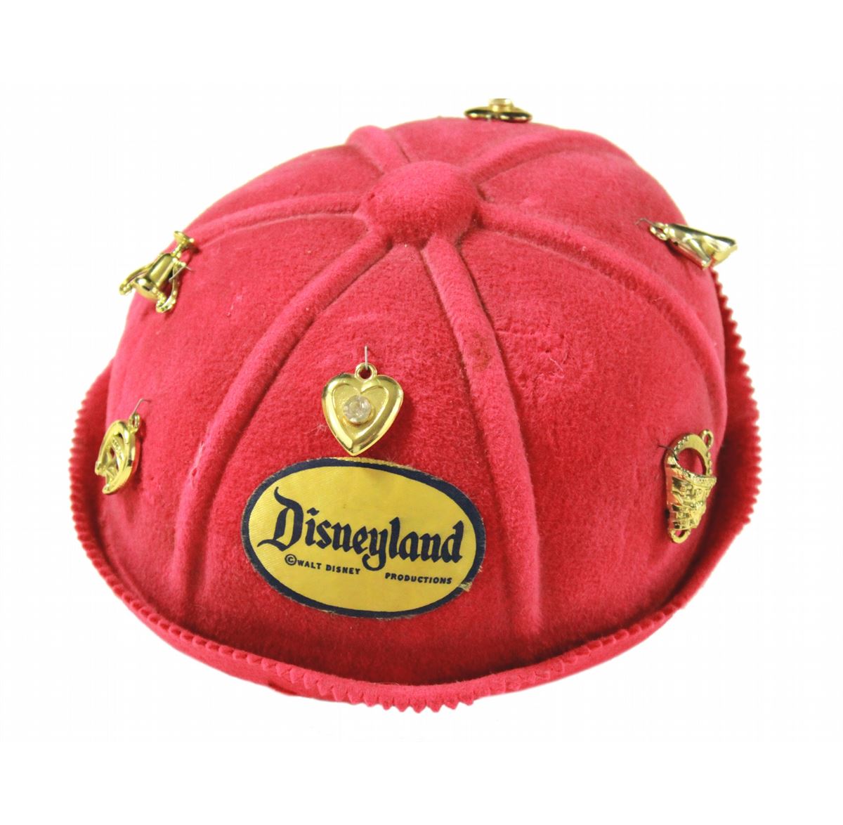(Disneyland, 1958) Charming souvenir felt beanie with original charms and Disneyland logo attached. Measuring 7 x 8 x 3 in. and in good condition.