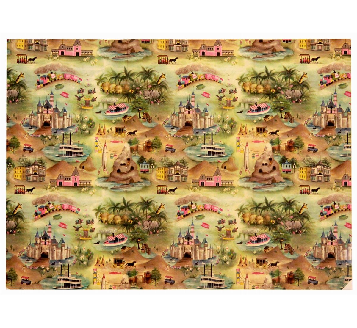 (Disneyland, 1959) Absolutely gorgeous 20 x 28.25 in. sheet of original Disneyland gift wrapping paper issued at the Hallmark Greeting Card Store on Main Street. Unused, and stored flat in fine condition.