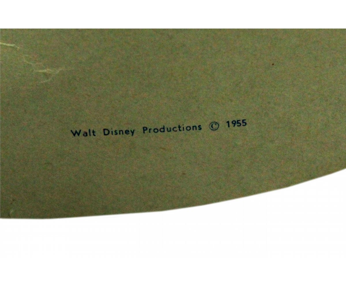 (Disneyland, 1955) Rare paper sun hat sold to lady guests to protect them from the California sunshine. Measuring 12.5 x 12 in. and in good condition with some wear.