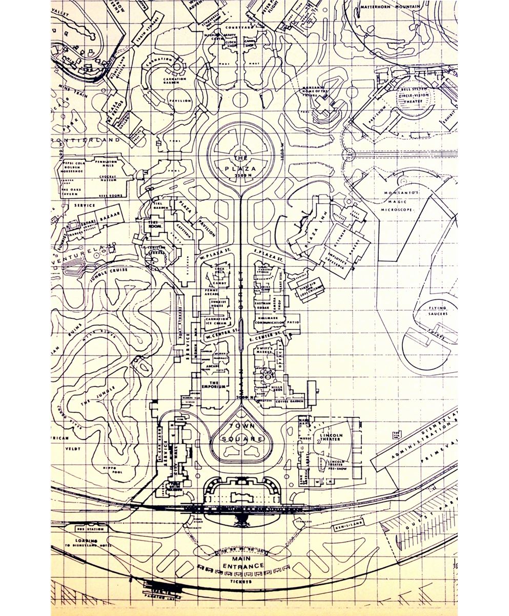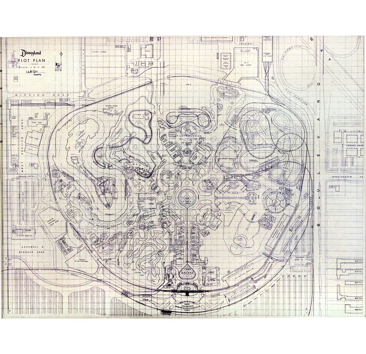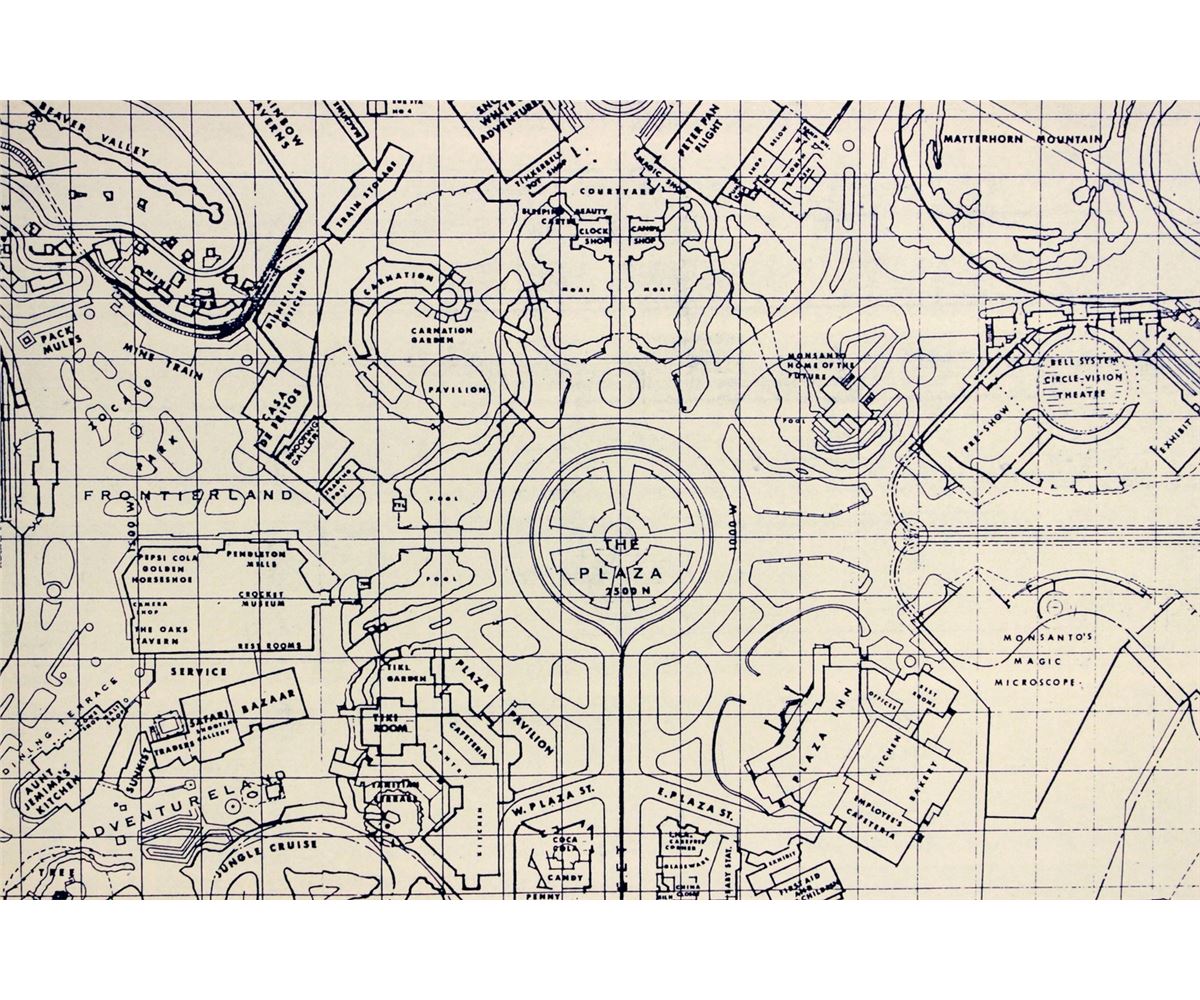 (WED, 1965) Rare blueprint made at Walt Disney Imagineering covering the transtitions at the park in 1965 as it prepared for major changes. Blueprint measures 36 x 46 in. and is in very good condition with minor wear.