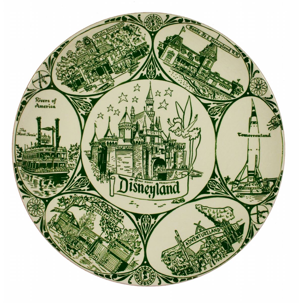 (Disneyland, 1956) Souvenir porcelain plate sold in the early days of the park. Measuring 9.5 in. in diameter. Disney quotation on reverse. In very good condition with some wear.