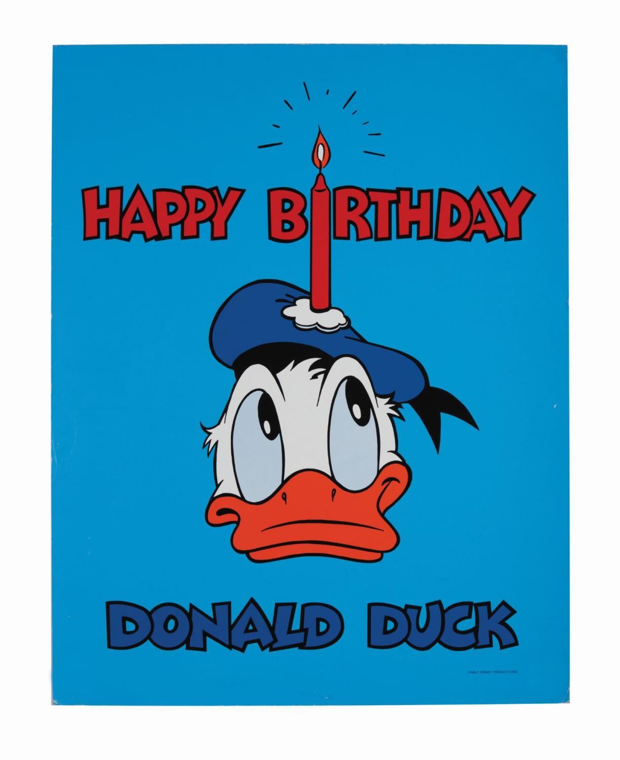 (Disneyland, 1984) A large sign created for Donald Duck's 50th Birthday celebration at Disneyland in 1984. This sign was displayed during the event and is printed on sturdy PVC board. The sign measures approximately 28"x22" and is in good condition with some surface scratches and scuffing throughout from use.