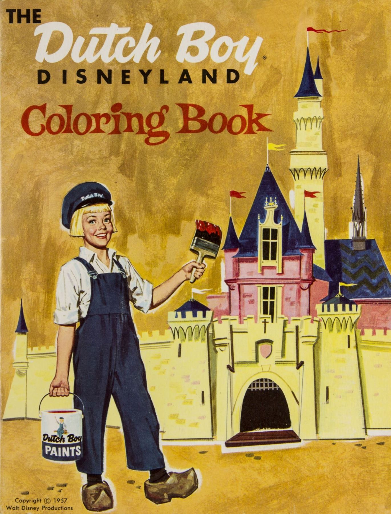 (Disneyland, 1957) A Disneyland coloring book by Dutch Boy Paints. This early Disneyland sponsor had an exhibit in Tomorrowland from 1956-63. This book measures 10.75"x8.25" and is in very good condition with a couple of pages colored.