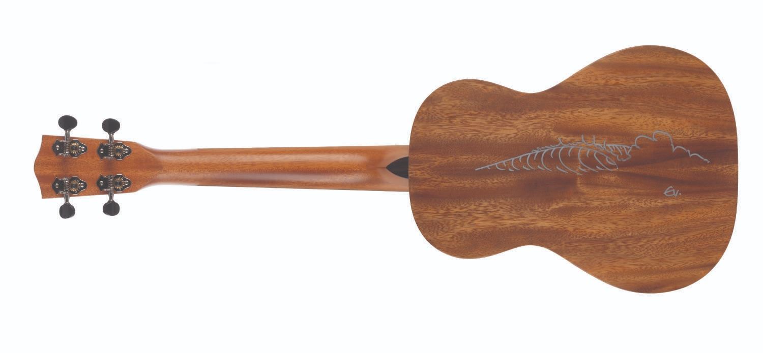 (Pono, 2018) Eddie Vedder's signed 2018 Pono AT 4-string tenor ukulele. The musical instrument is composed of solid acacia with a satin finish, mahogany neck, and ebony fretboard. The Pearl Jam frontman signed the ukulele in silver marker and drew cresting waves, adding a larger wave and his initials on the reverse. Measuring 26.5" long, the ukulele comes with its 31" long hard-shell case and is in very good condition with light wear from use by the Rock and Roll Hall of Famer.