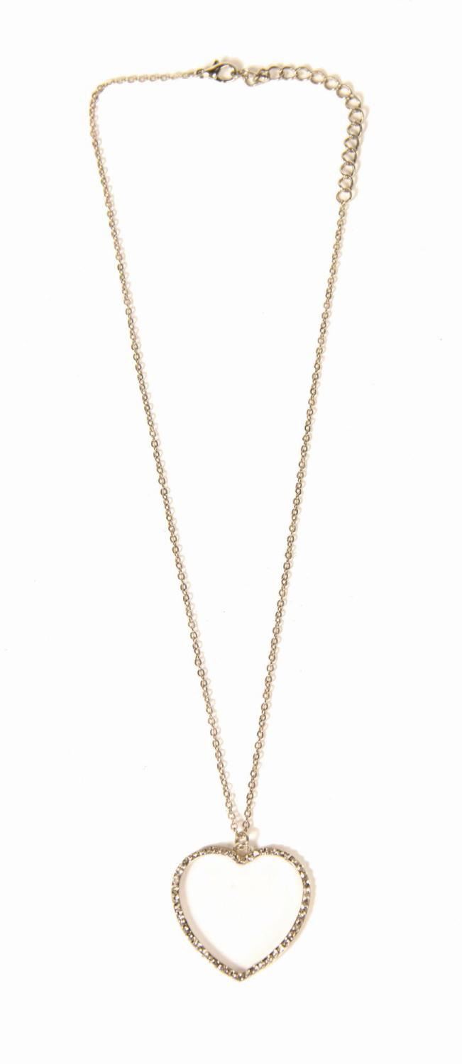(ABC, c.1960) An original necklace prop that was used in the television show Bewitched. Following its use during production of the show, the necklace was kept and worn by Elizabeth Montgomery until her untimely death in 1995. The necklace was used throughout the 8 seasons of the show by Samantha's wacky cousin Serena. The heart-shaped pendant features (50) crystal rhinestones, set in a silver plated metal base. Measuring 1.25"x1.25" with a 9" long chain, the necklace is in very good condition with minor wear from use.