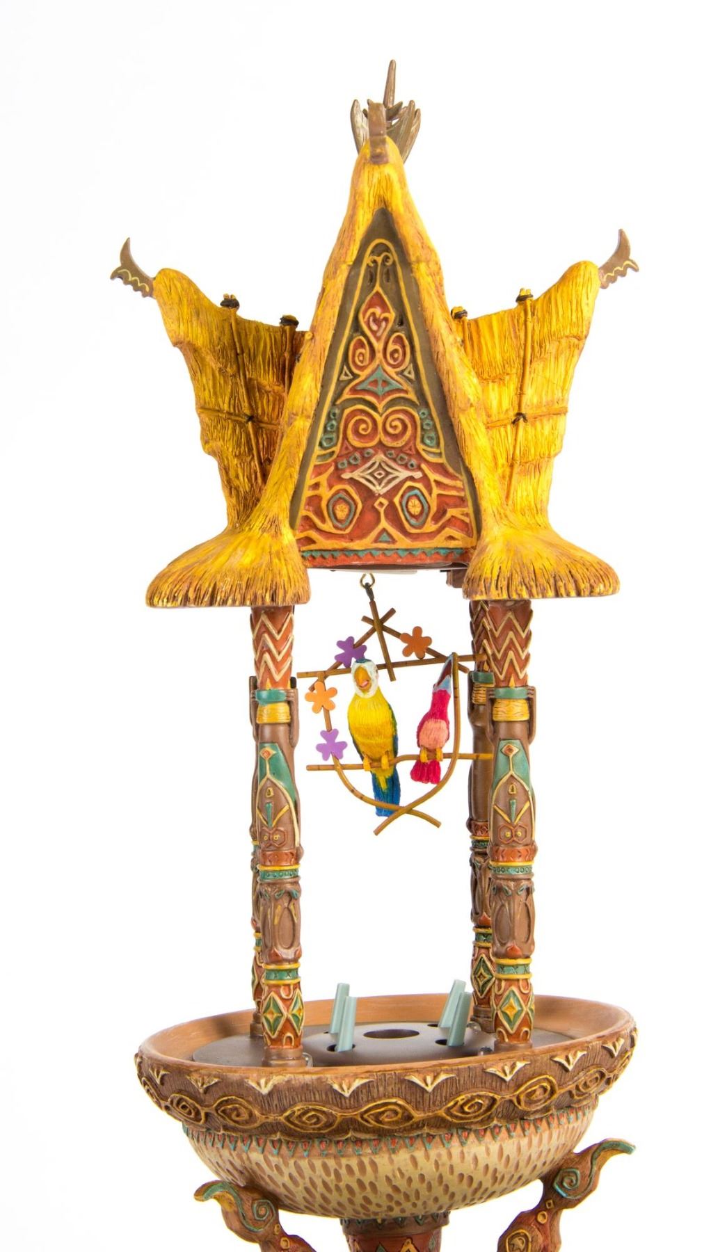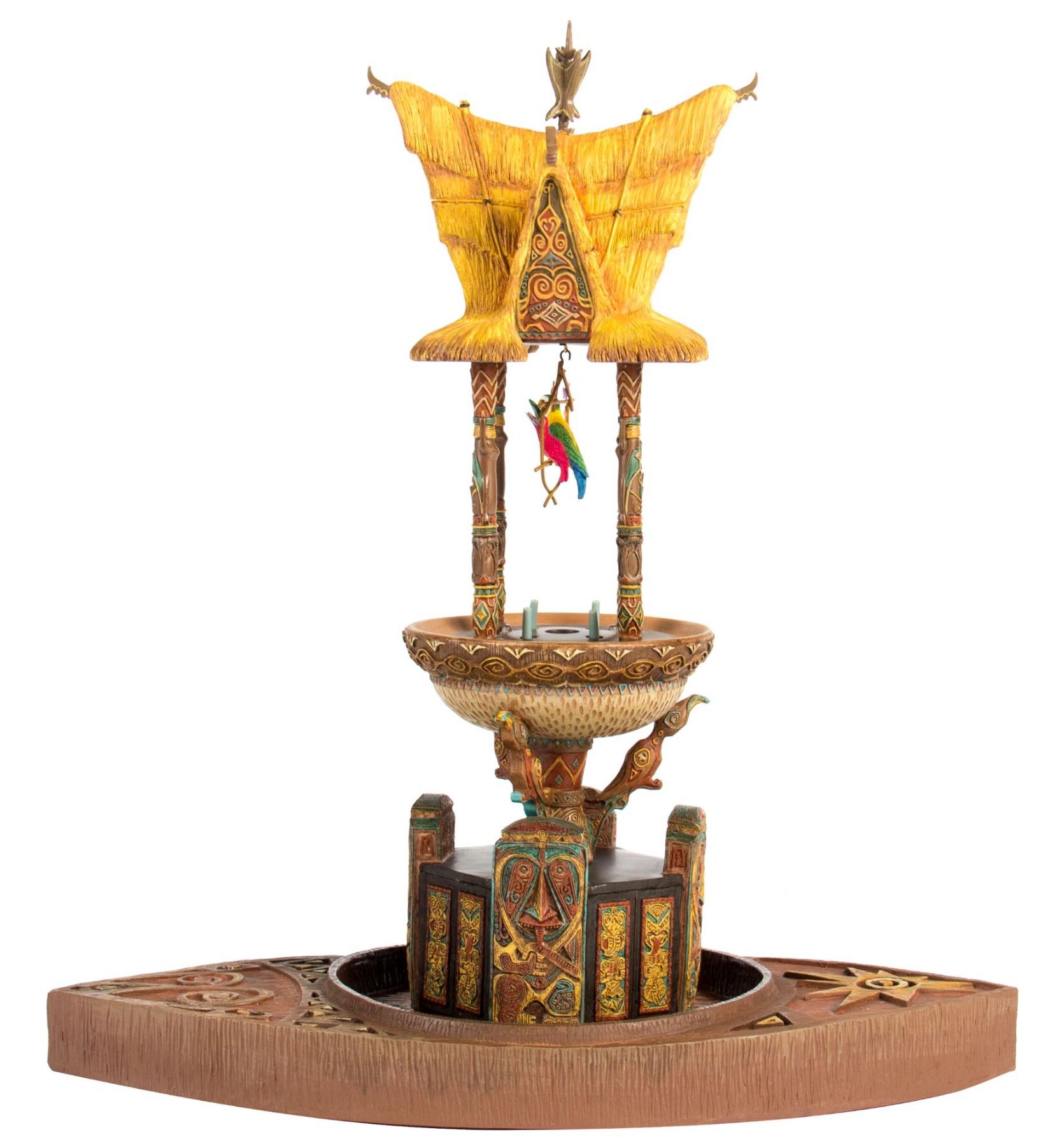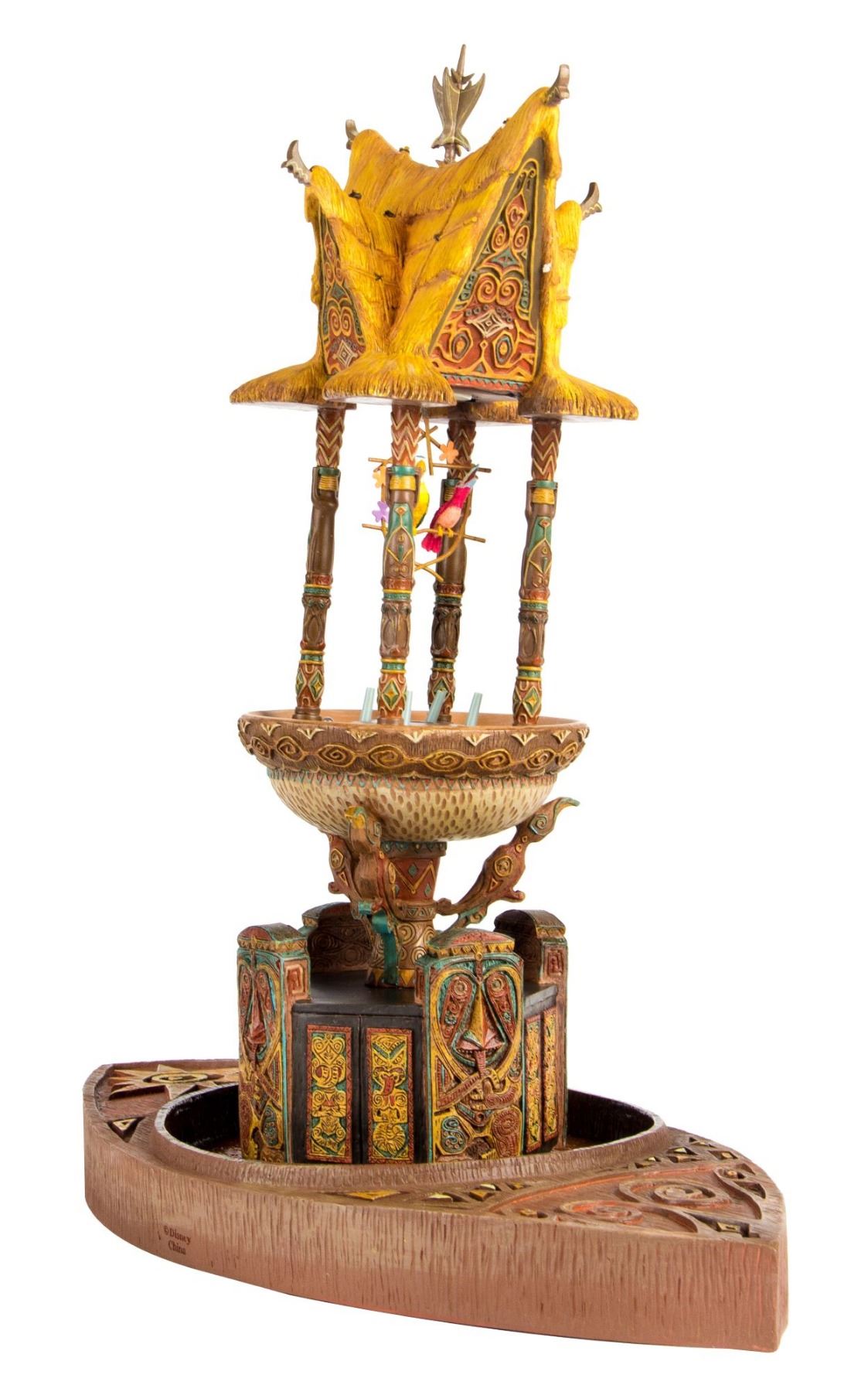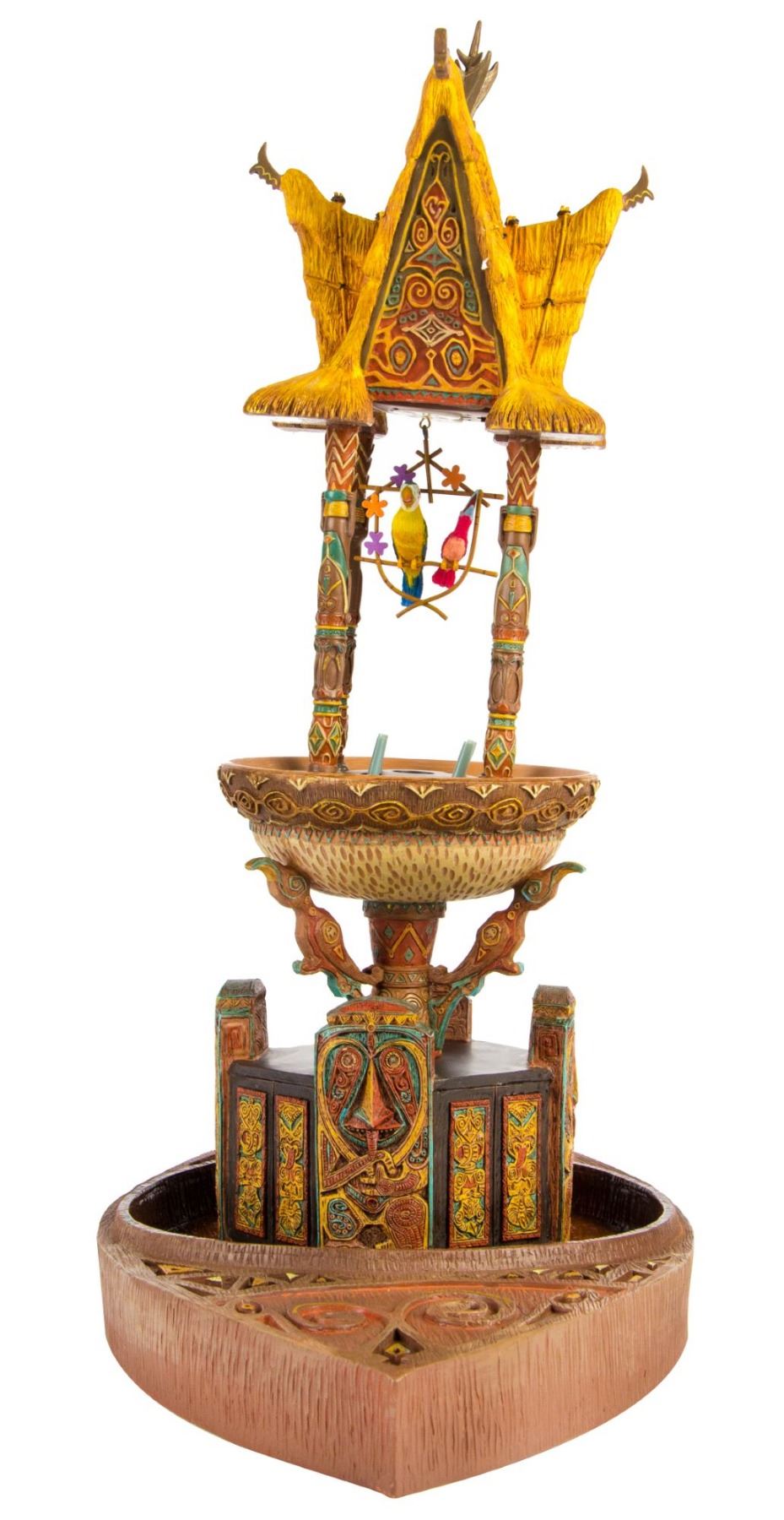 (Disneyland, 2008) An incredible limited edition "Enchanted Tiki Fountain" created by Kevin Kidney and Jody Daily for the 45th Anniversary of the "Enchanted Tiki Room". This functioning fountain, inspired by Rolly Crump's original designs, features design elements based on the original attraction and includes 4 water jets that are beautifully lit by hidden LEDs. The bottom of this collectible is signed by Kidney and Daily, and the fountain measures approximately 19.5" tall. The condition is very good and the fountain comes in its original box.