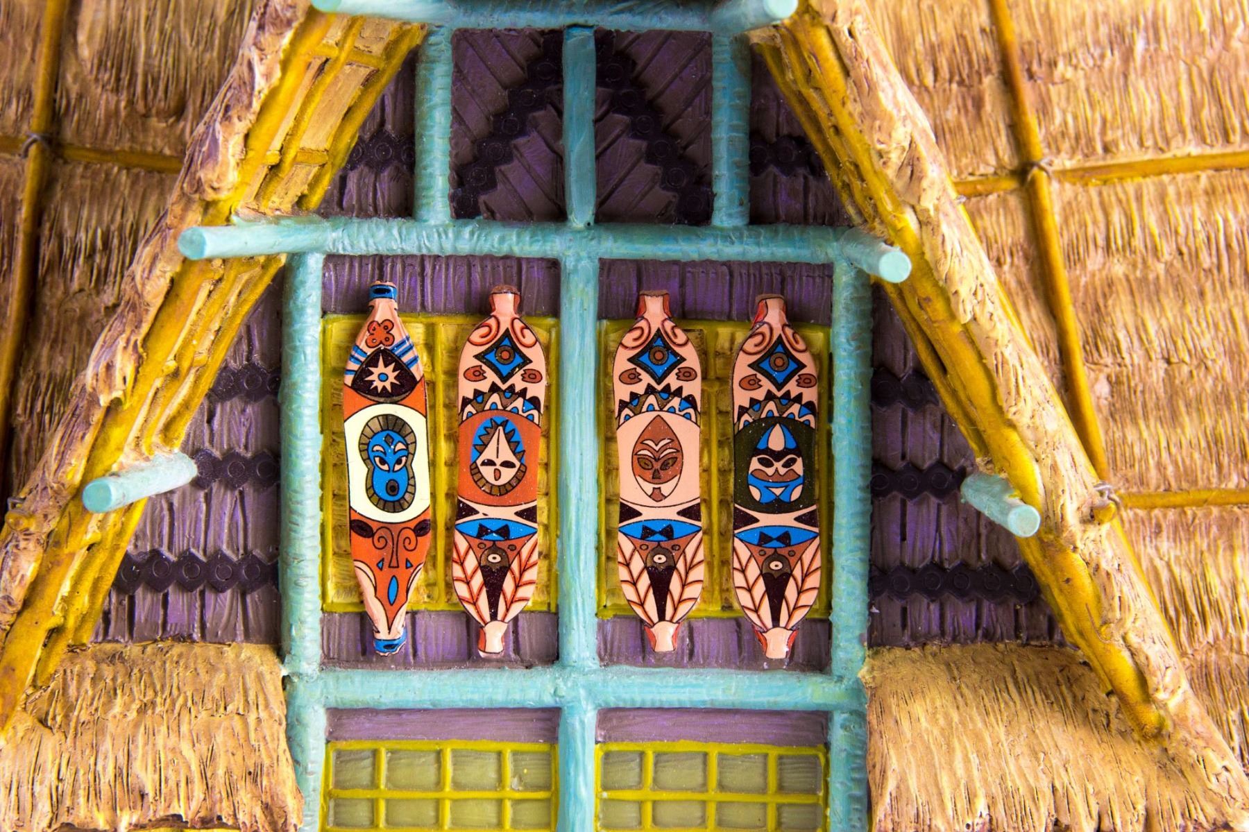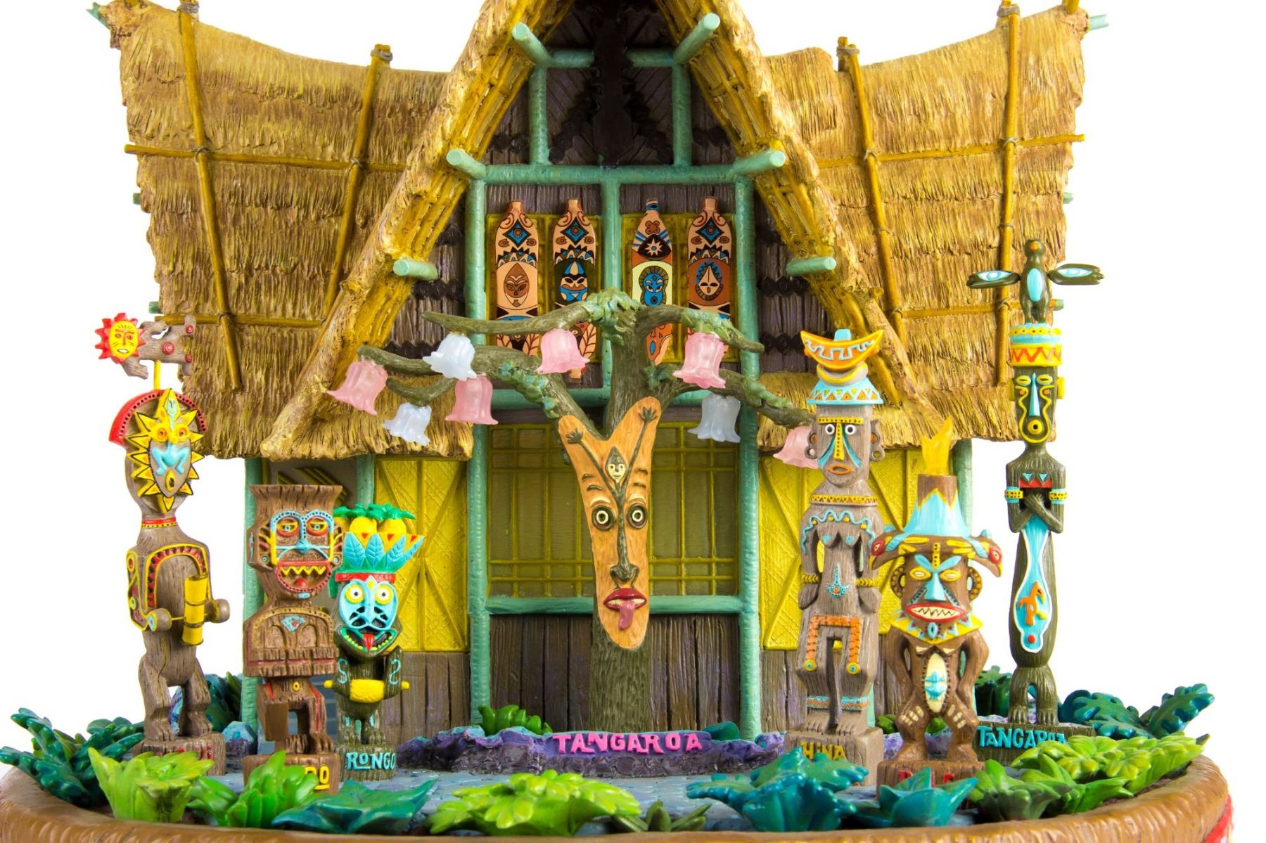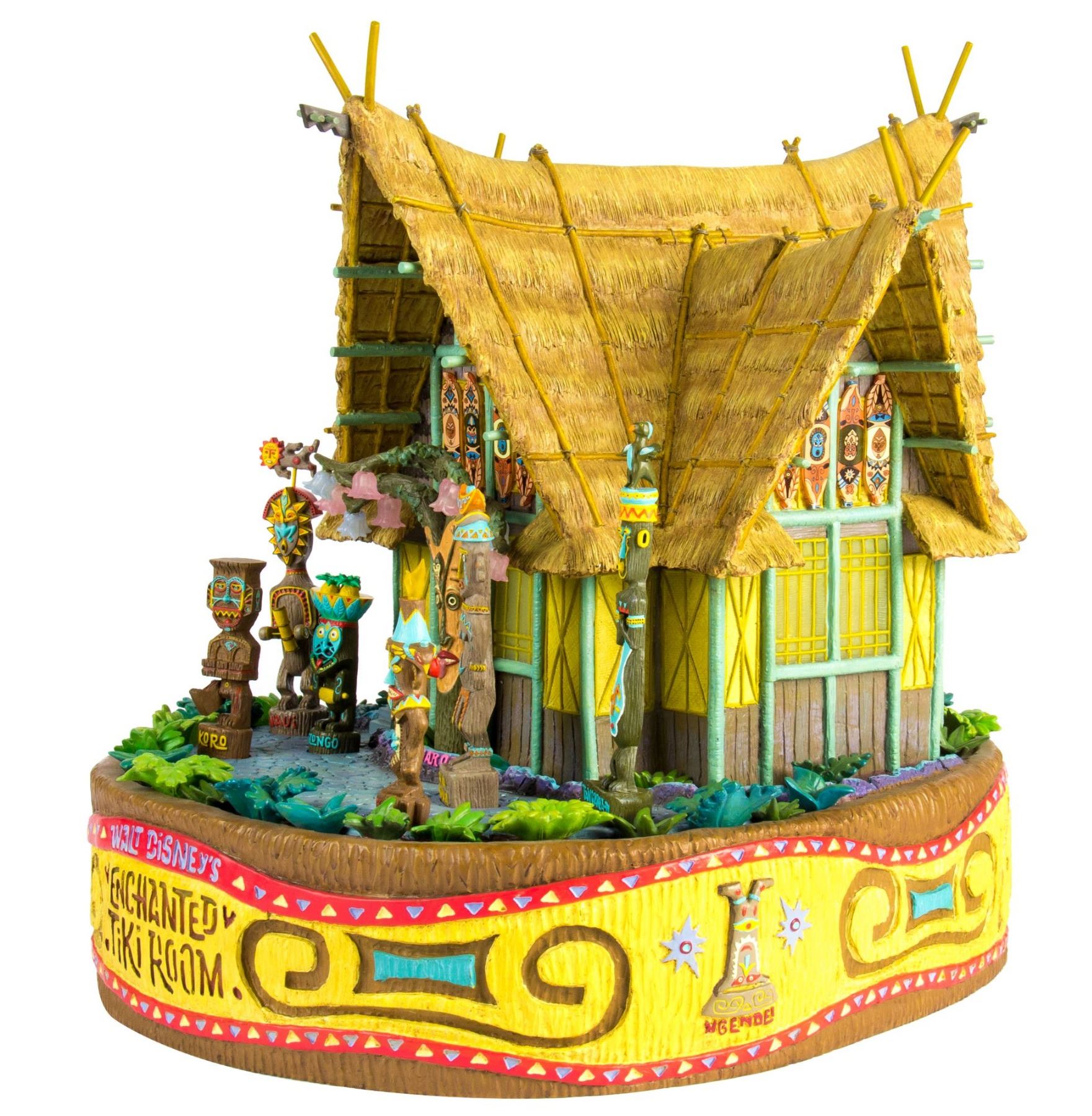 (Disneyland, 2004) A stunning "Magical Big Figurine" created by Larry Nikolai which depicts a small-scale version of the "Enchanted Tiki Room" attraction. This big fig is battery-operated with lights throughout and has six removable Tiki Garden Gods which have magnetic bases. This item measures approximately 17.5 tall, and is in very good condition with little wear. The big fig comes in its original box.