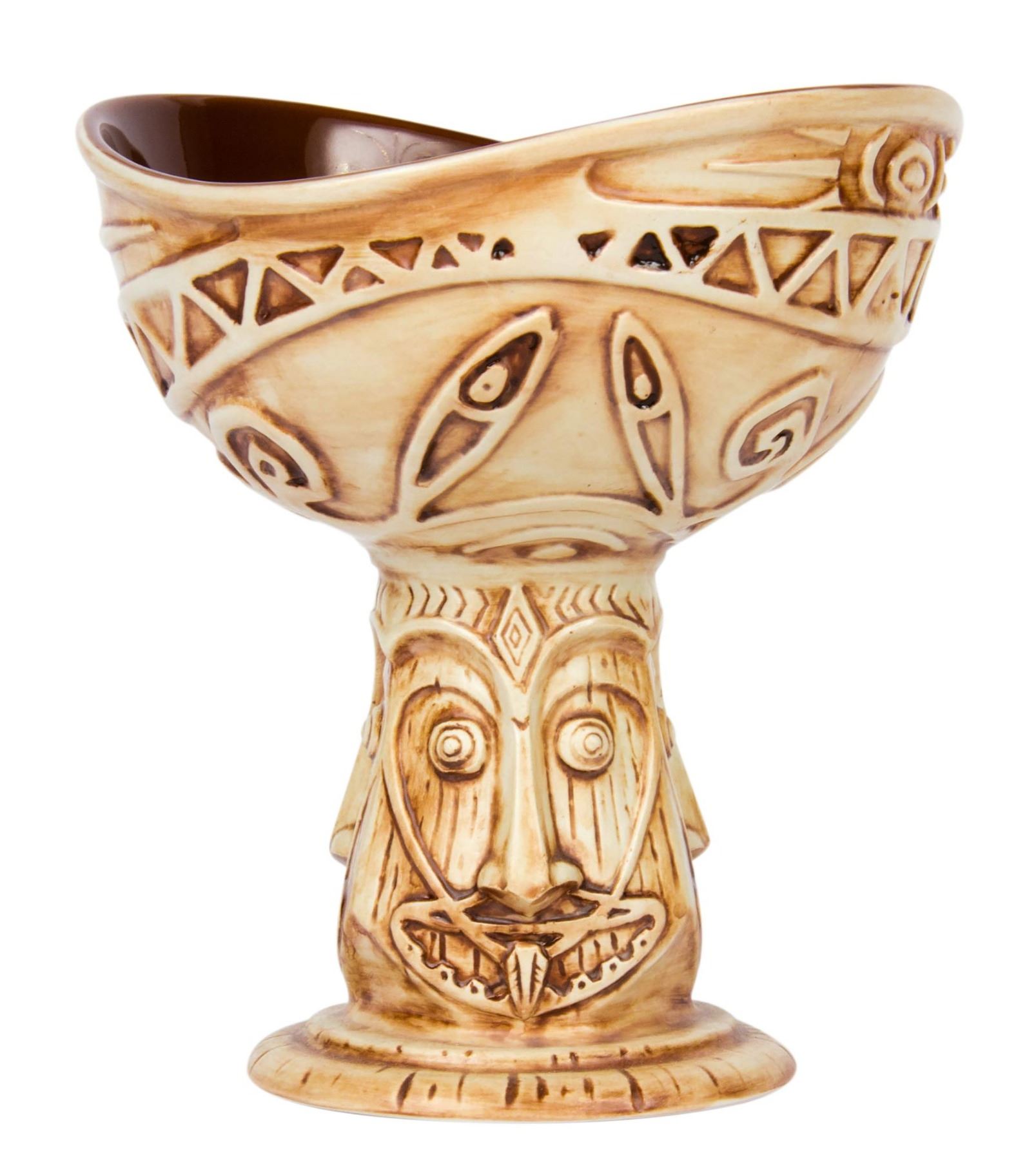 (Disneyland, 2005) A brown ceramic tiki bowl created by Kevin Kidney and Jody Daily for Disneyland's 50th Anniversary celebrations. This bowl, inspired by Rolly Crump's original designs, is modeled after Rongo from the "Enchanted Tiki Room" and is signed on the base by both Kidney and Daily. The bowl measures 8" tall and is in very good condition.