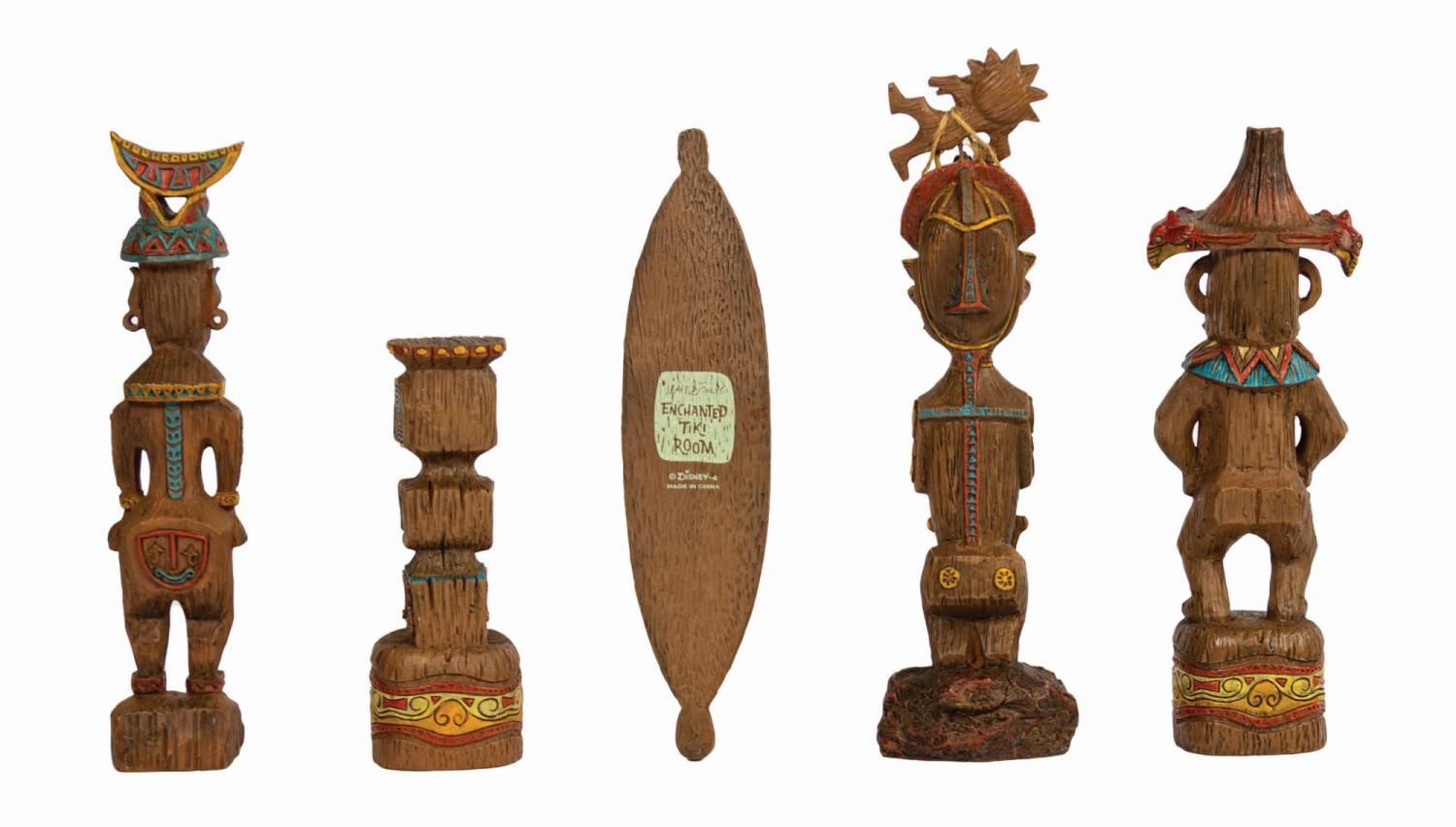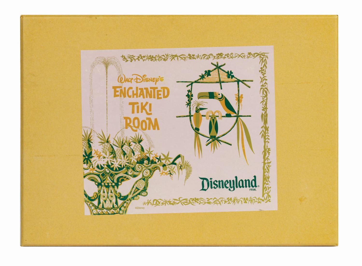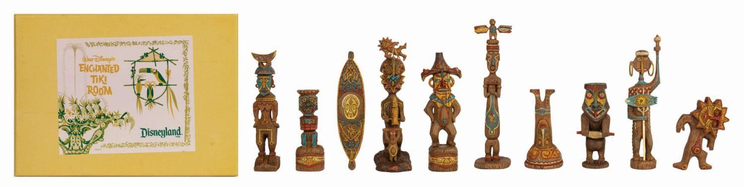 (Disneyland, 2005/2008) A pair of limited edition Enchanted Tiki Garden Gods sets by artists Kevin Kidney and Jody Daily. Constructed of cast resin intricately sculpted to appear as native artisan-carved wood, the sets depict the popular tiki gods from the attraction's pre-show. Both were produced in an edition of 1000 and each set retains its original box. Ranging in size from 4.75" tall to 9" tall, the figures are in very fine, as-new condition. The boxes measure 11.75"x12.5" and 5" deep and 10.75"x15" and 5.25" deep respectively and exhibit only minor wear. The upper right corner of the lid to Set 2's box is split. The sets include their original COAs.