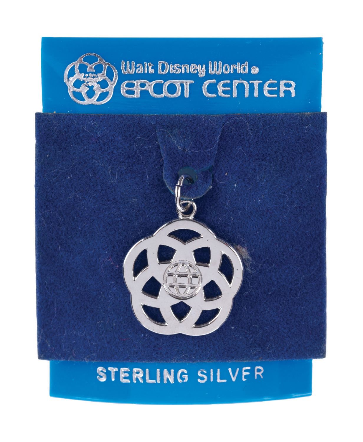 (EPCOT, 1980s) An Epcot Center sterling silver charm modeled after Epcot's 5-ring logo and attached to the original packaging. Measuring approximately 0.75" in diameter the charm is in very good condition.