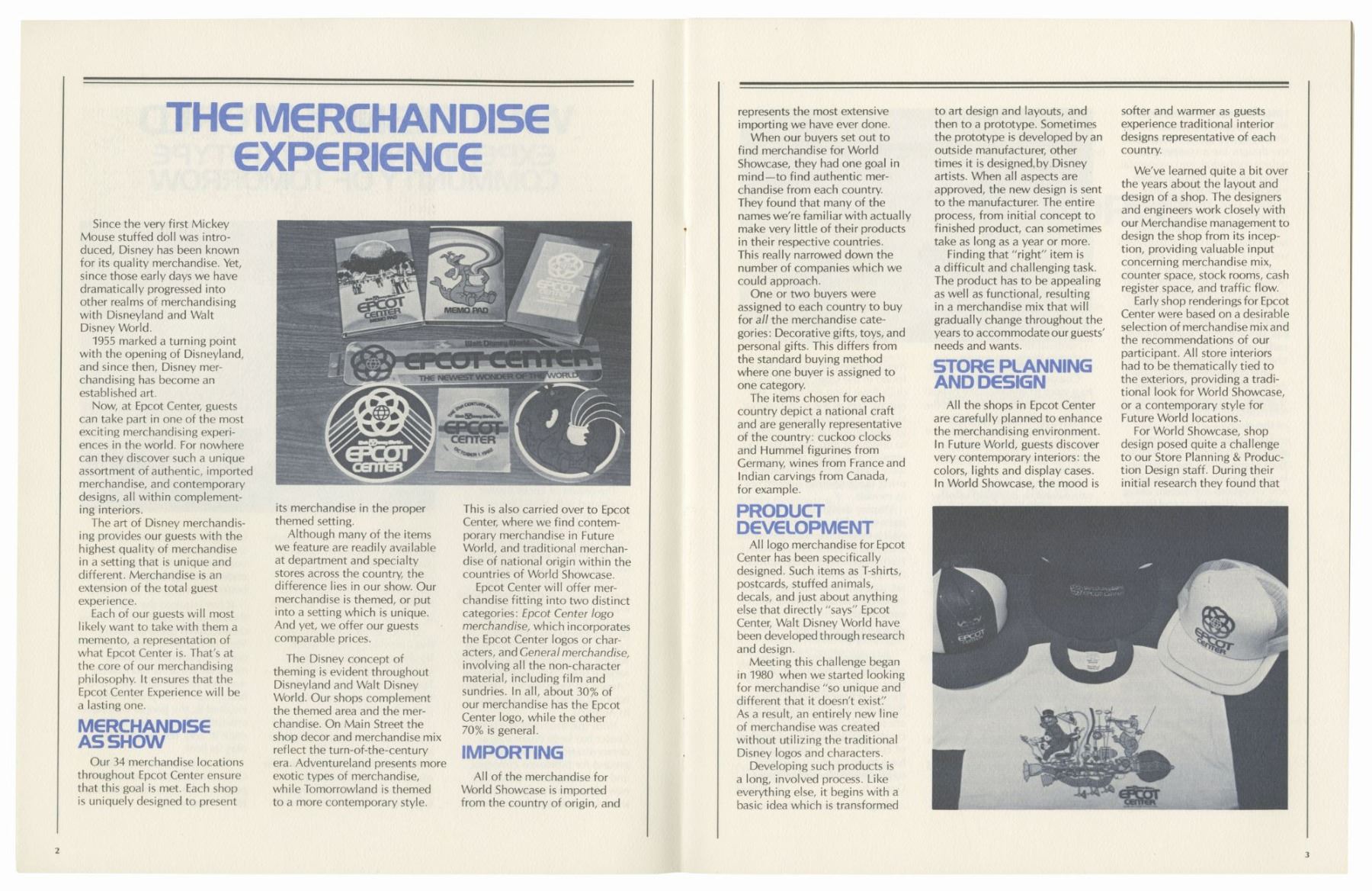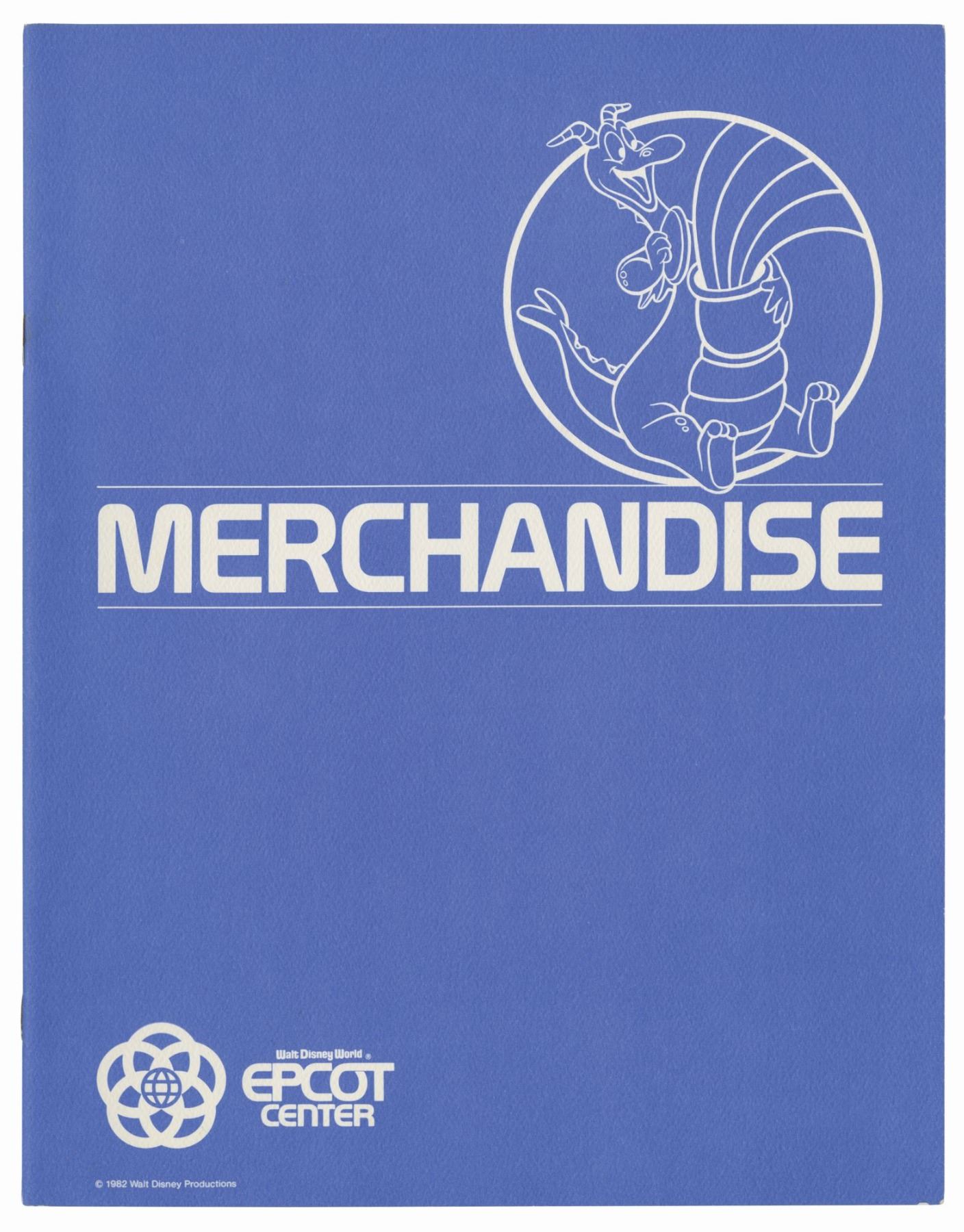 (Epcot, 1982) A very rare pre-opening packet discussing the merchandise for Epcot. Featuring imagery of Figment on the cover, the 12-page packet contains great black and white photos and information on some of the earliest Epcot souvenirs. Measuring 11"x8.5", the packet is in very good condition.