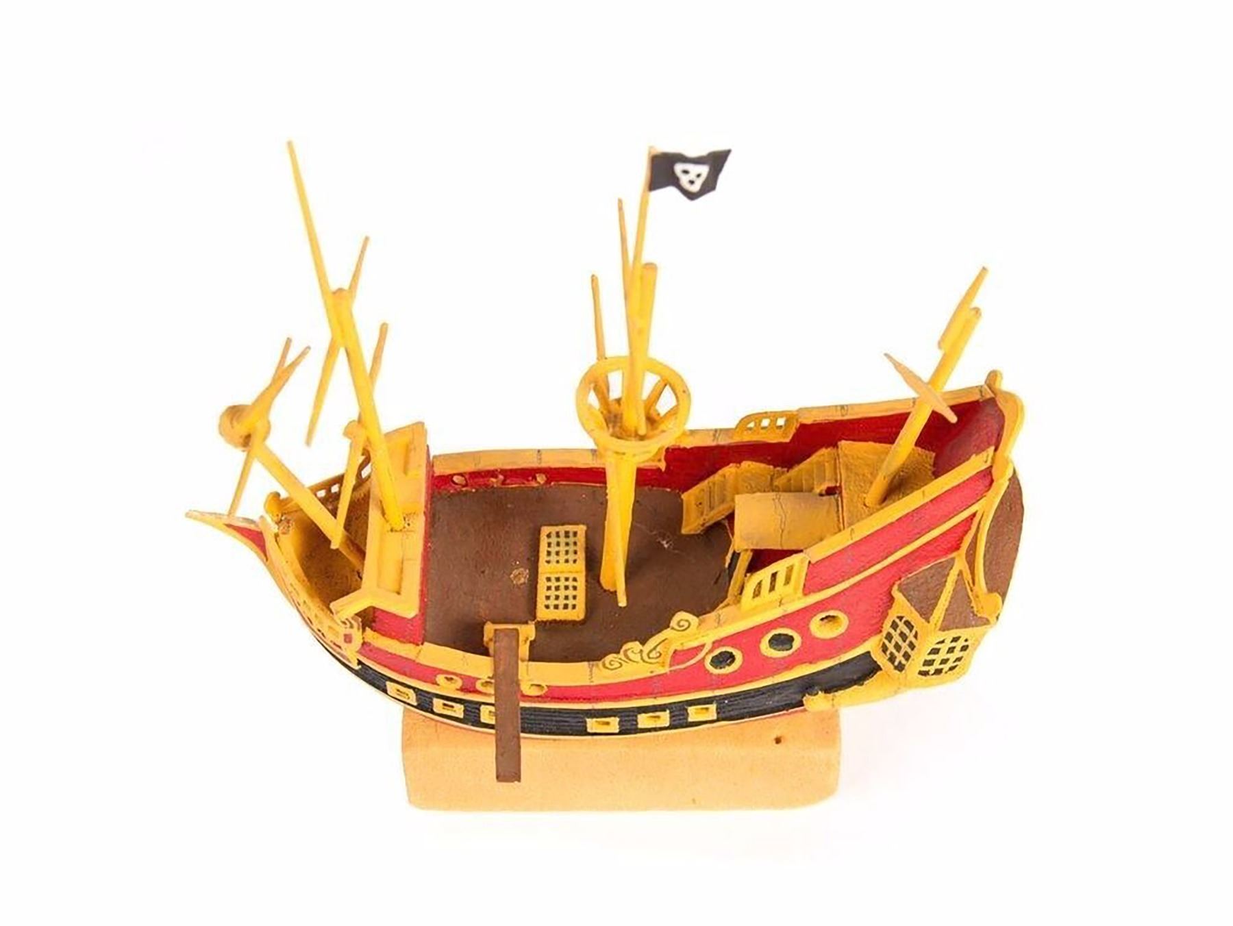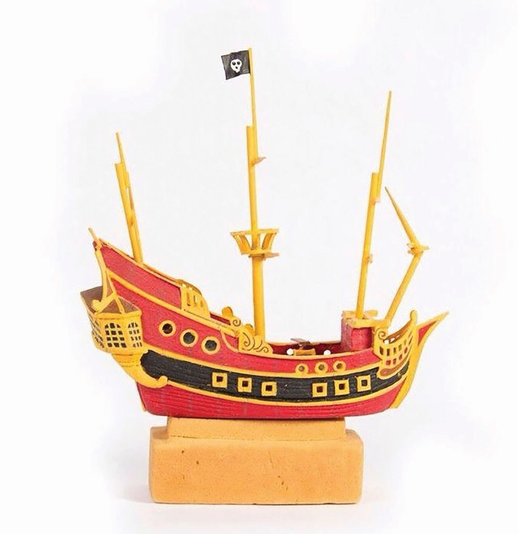 (Disneyland, 1983) An extremely rare Imagineering model of the Captain Hook's Pirate Ship restaurant in Fantasyland, formerly known as the Chicken of the Sea Pirate Ship restaurant. Likely created during the New Fantasyland refurbishment of 1983, this model comes from the estate of Imagineer John Stone. Measuring 4"x6.5" and 8.5" tall, the model is in very good condition with some small pencil marks throughout from the model's original use.