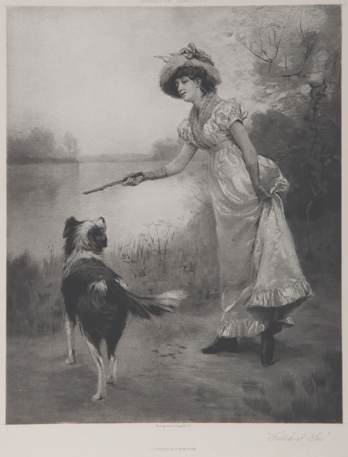 (Hamilton, 1884) A Photogravure print titled "Fetch It, Sir" by Hamilton Hamilton. A prolific painter and illustrator, Hamilton travelled extensively, finding subjects as far afield as France, New York, and the American West. This print on paper was produced by D. Appleton & Co. of New York. With an image size of 9" x 11" on 11.75" x 14.75" paper, the piece is in fine condition.