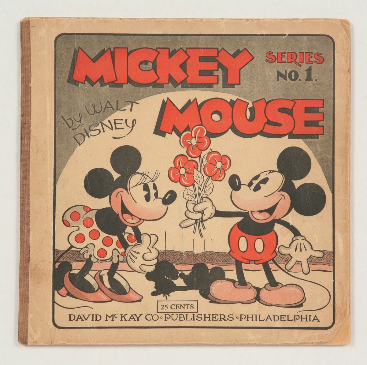 (David McCay, 1931) A very rare first edition of McCay's "Mickey Mouse Series No. 1" softcover book. Measures 10"x10". 48 pages. In very good condition with some cover wear and discoloration. Cover's corners are worn, and a few interior pages have small hairline tears around the edges.