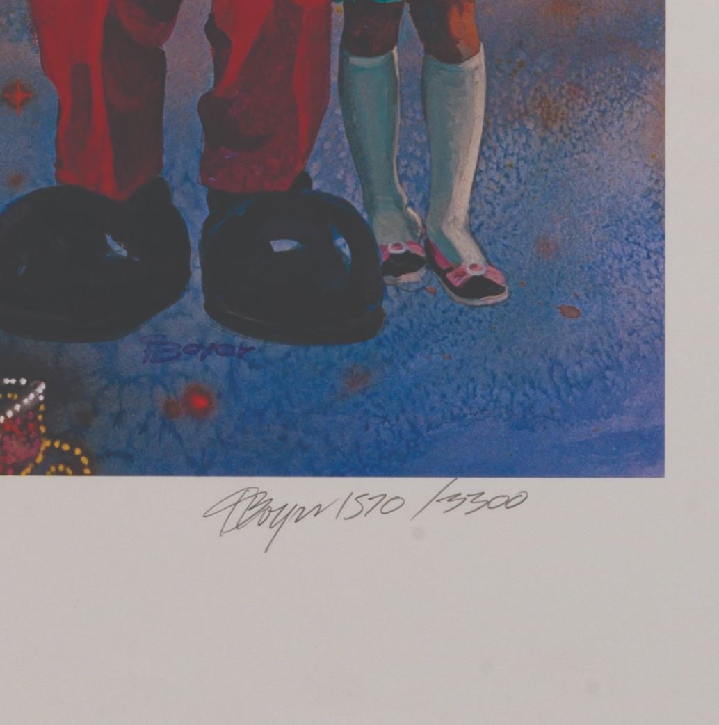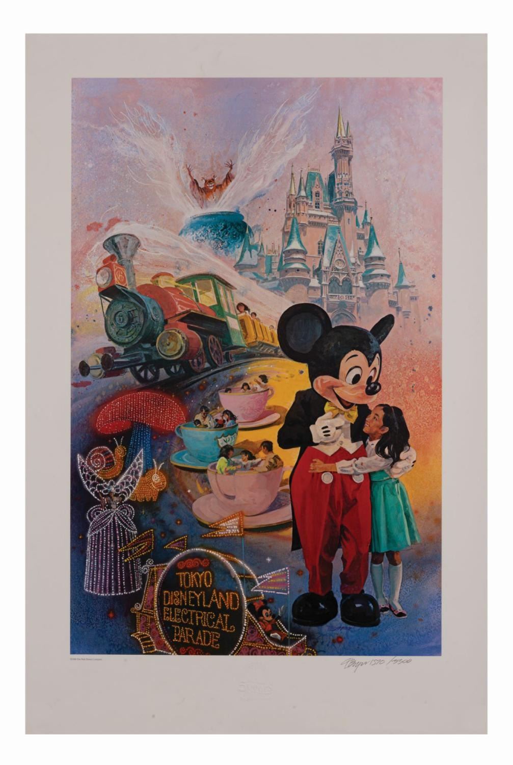 (Tokyo Disneyland, 1988) A limited-edition print titled "Five Years of Happiness" by Charles Boyer. It was created for Cast Members in commemoration of the 5th anniversary year of Tokyo Disneyland. The print is embossed with the "5 Years Tokyo Disneyland" logo, numbered "1570/3300", and signed by artist Charles Boyer. Measuring 30"x20", the print is in fine condition.