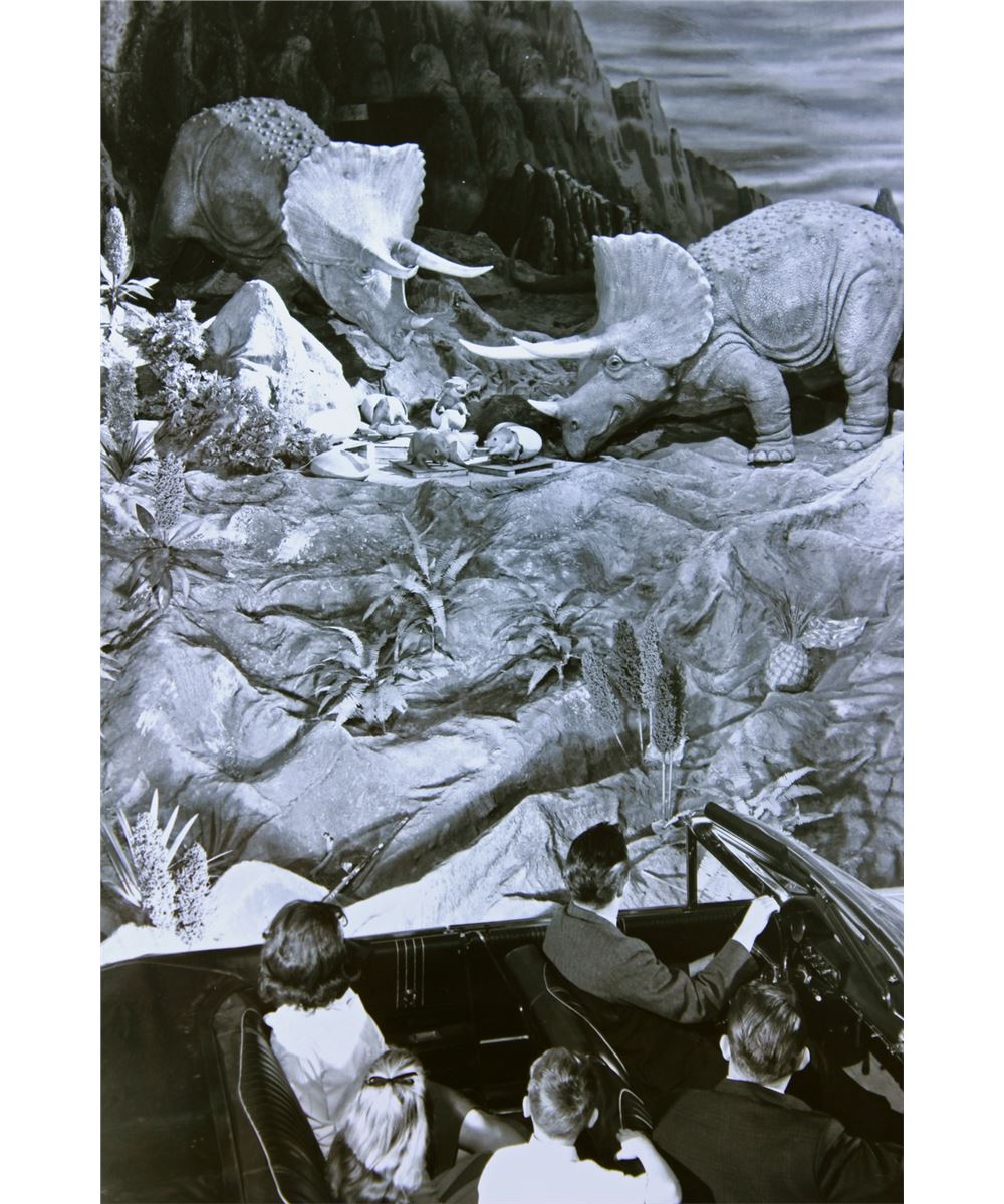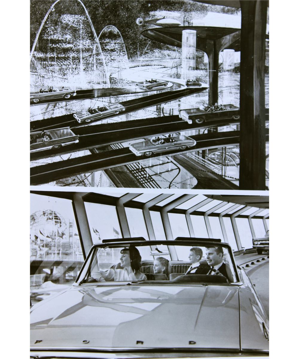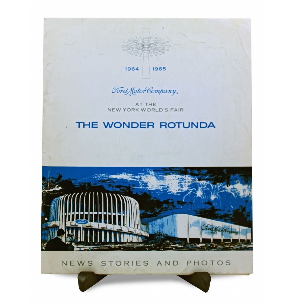 (New Your World’s Fair, 1964) Press kit for Walt Disney’s Magic Skyway at the Ford Pavillion in the 1964-65 New York World’s Fair. Known as the Wonder Rotunda, the innovative building featured full sized Ford automobiles moving along a conveyance in a system that eventually became the WEDWAY Peoplmover. News stories and very rare interior photos of the attraction are featured in an illustrated cover folder. Folder measures 11.75 x 9 in. In very good condition.