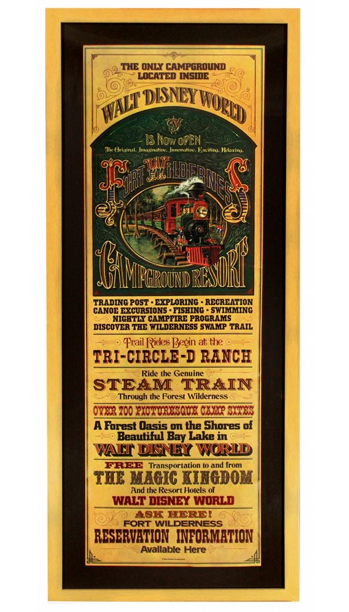 (Walt Disney World, 1971) Original poster for the Fort Wilderness attraction at Walt Disney World. The poster measures 47 x 16 in. and is in very good condition with some light wear and wrinkling. Unexamined out of frame.