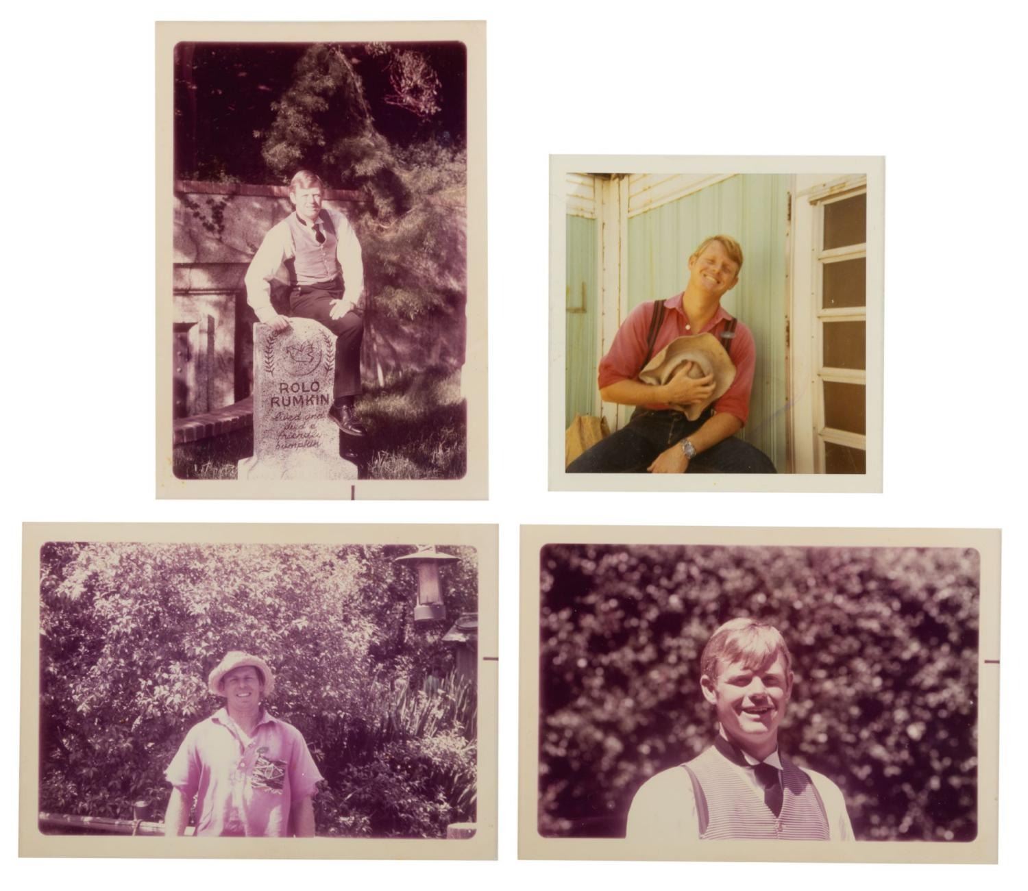 (Disneyland, 1970s) A collection of four color snapshot prints of a Disneyland Cast Member in Haunted Mansion and Frontierland costumes. Measuring from 3.5” x 3.5” to 3.5” x 5”, the prints are in good condition with typical color fading from age.