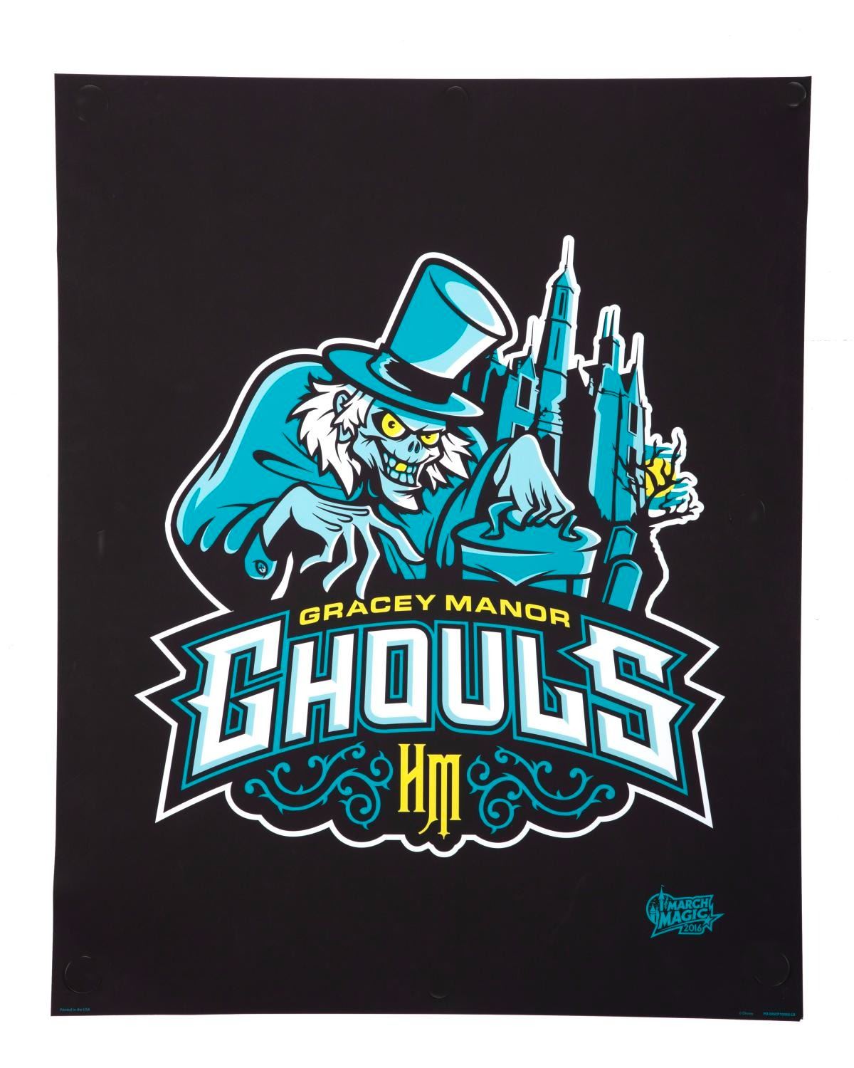 (Disney, 2016) Four March Magic Haunted Mansion Prints including two versions of the "Gracey Manor Ghouls" and "Haunted Mansion Holiday." The event put a Disney spin on college basketball's "March Madness" and involved voting, matches, and merchandise through The Disney Store March Magic event in 2016. Measuring 30" x 24", the prints are stored rolled and in fine condition.