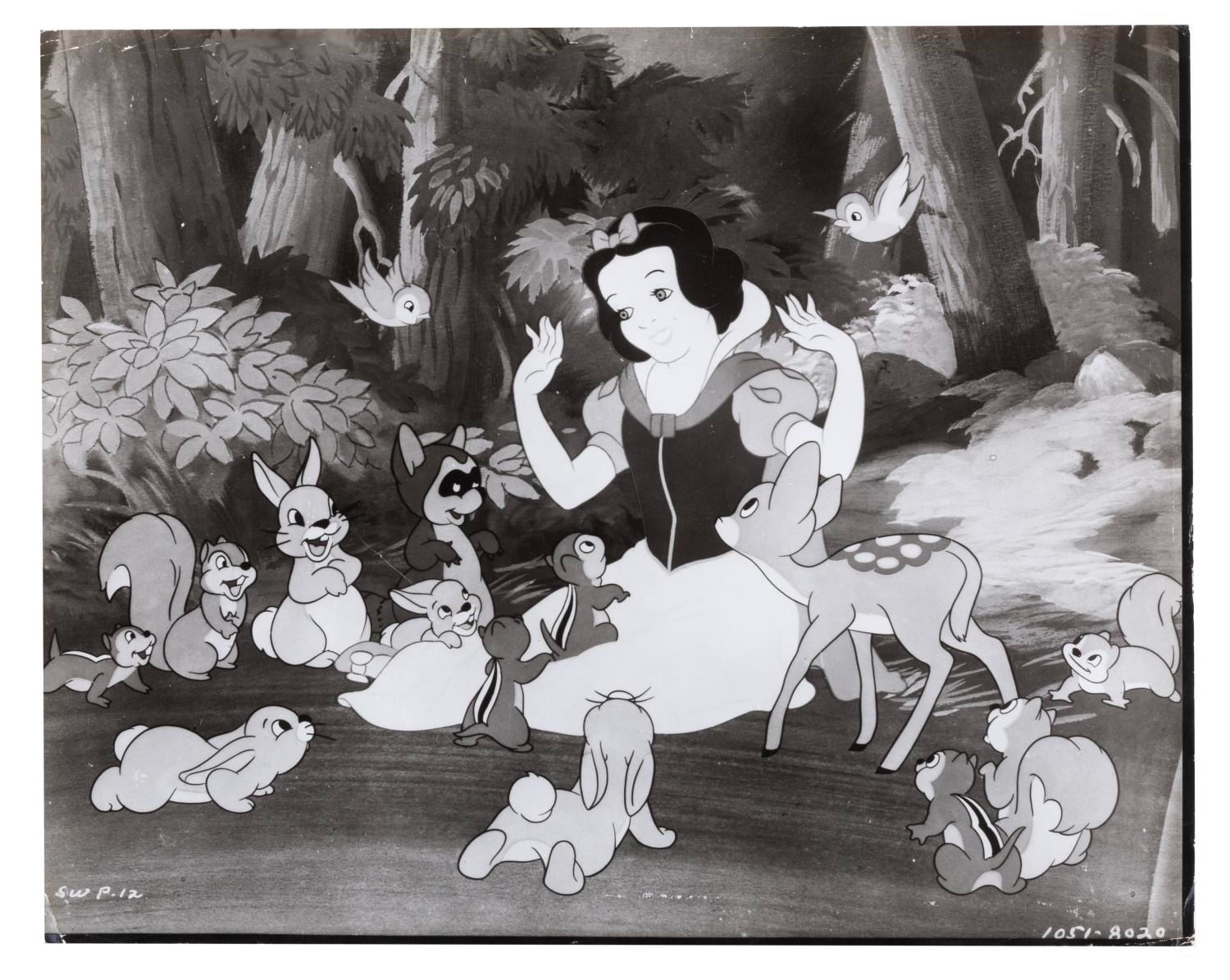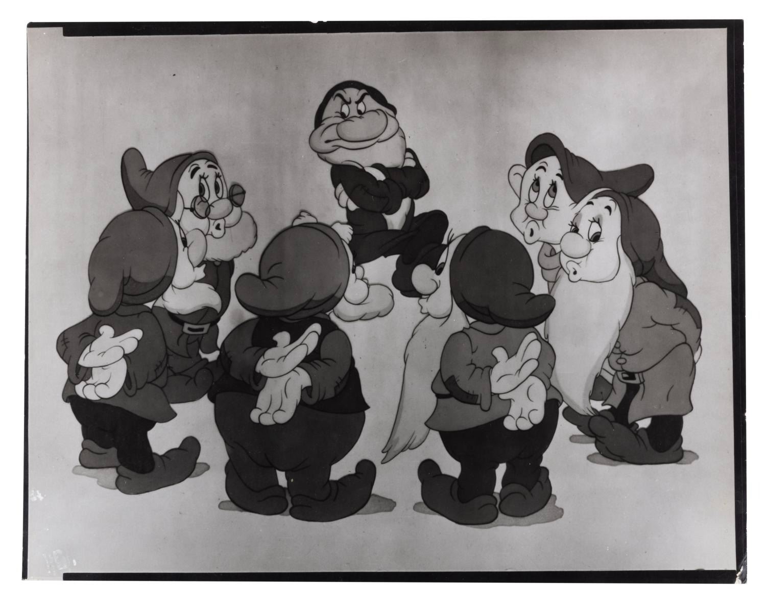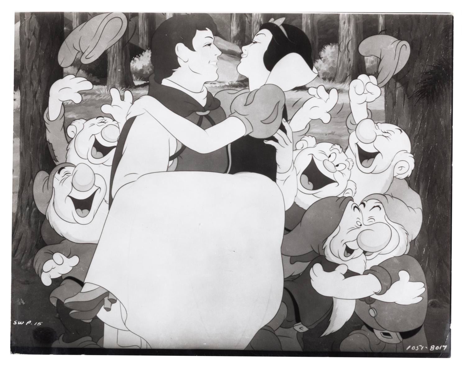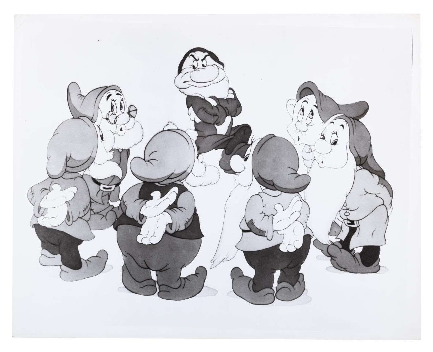 (Disney, 1950s-70s) Four large “Snow White and the Seven Dwarfs” photographs used to create theatrical promotions, including lobby cards. Measuring 11.25” x 14”, the photos are in fair to good condition with creases, scratches, and wear.