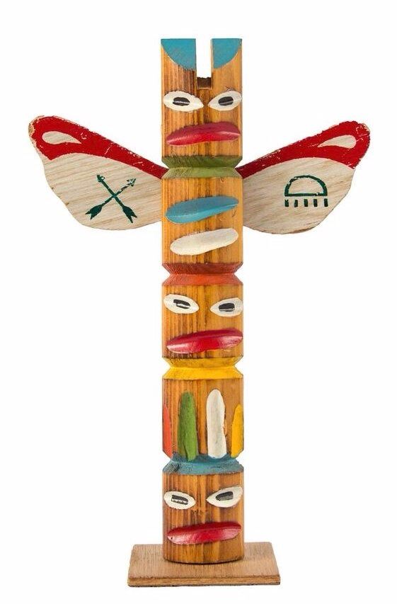 (Disneyland, c.1960s) An early Disneyland souvenir totem pole from Frontierland. This item is made of hand-painted wood and still retains the original Disneyland sales sticker on the base. This item measures 10" tall and is in very good condition with some paint wear from use.