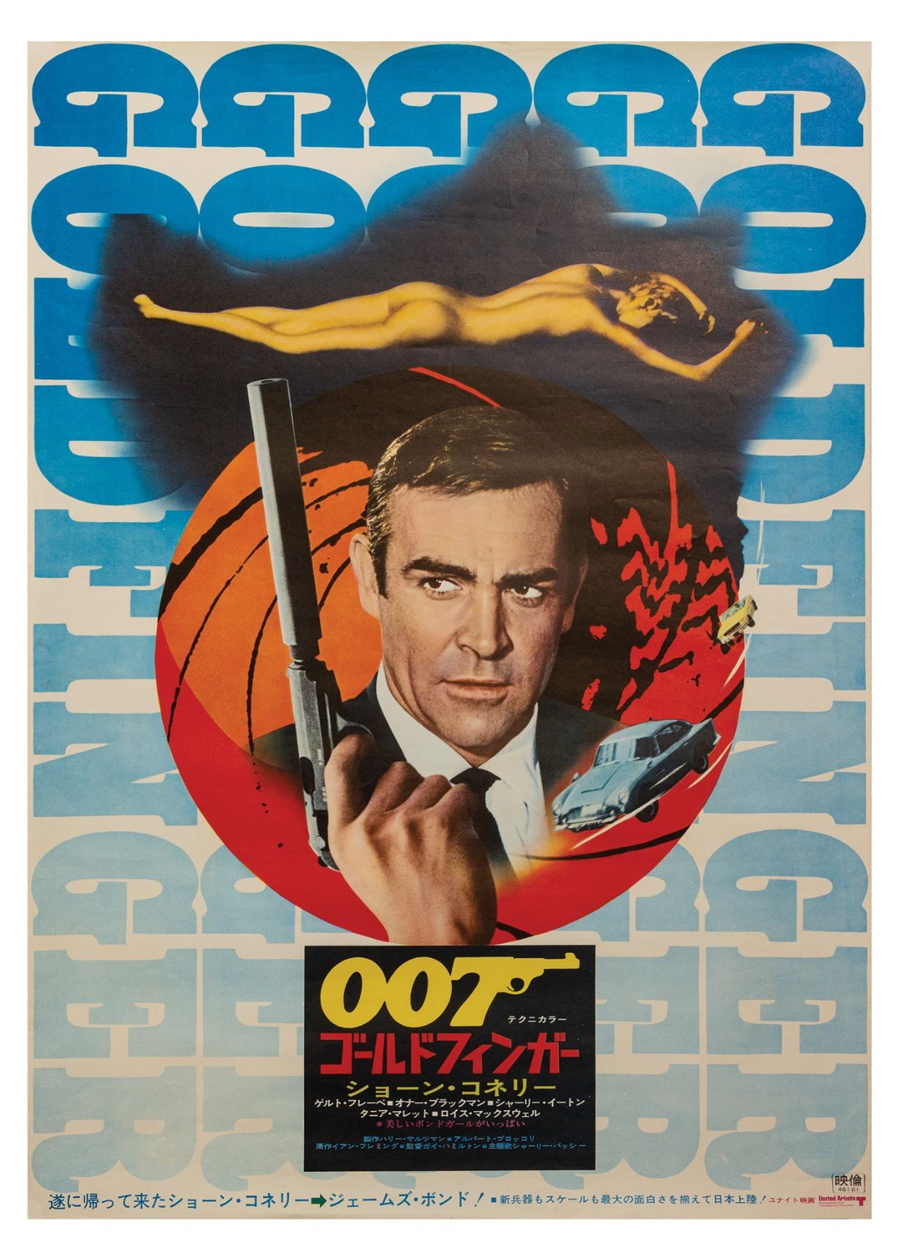 (United Artists, 1971) A rare Japanese B2 poster from the theatrical re-release of Goldfinger, starring Sean Connery. Measuring approximately 28.75"x20.25" on thin paper, the poster is in very good overall condition with minor handling wear.